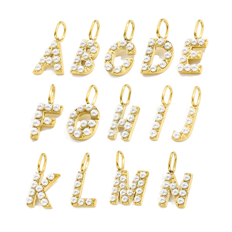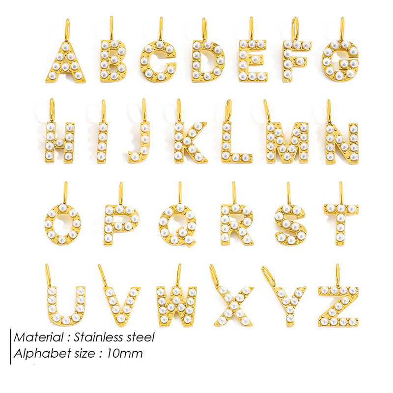 Pendentif de lettre en acier inoxydable, Acier inoxydable 304, avec perle de plastique, Lettre d’alphabet, Placage de couleur d'or, DIY & styles différents pour le choix, 10mm, Vendu par PC