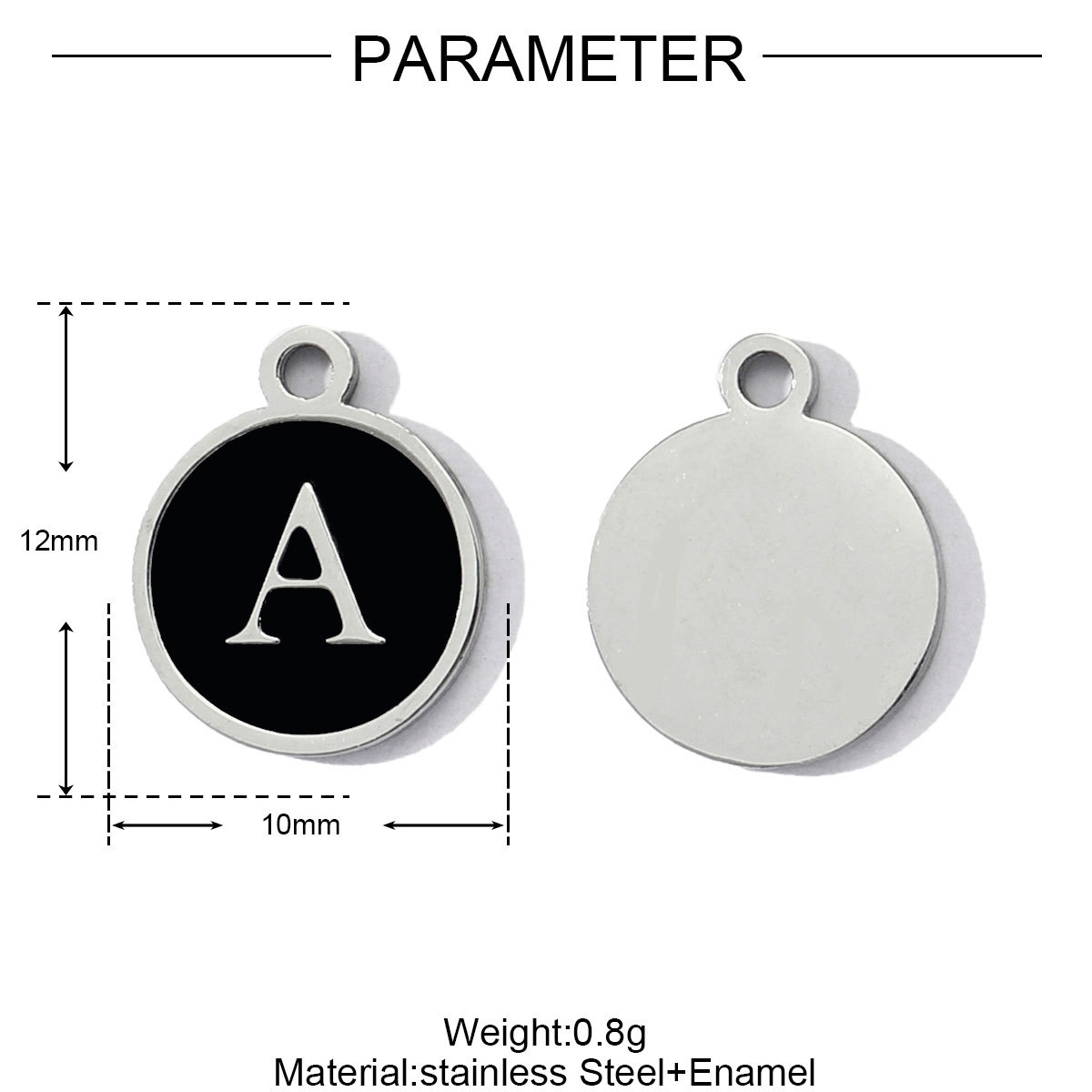 Pendentif de lettre en acier inoxydable, Acier inoxydable 304, Rond, Placage, DIY & émail, plus de couleurs à choisir, 3PC/sac, Vendu par sac