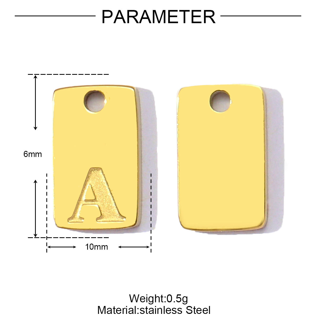 Pendentif de lettre en acier inoxydable, styles différents pour le choix, couleur originale - Environ 1mm, Vendu par PC