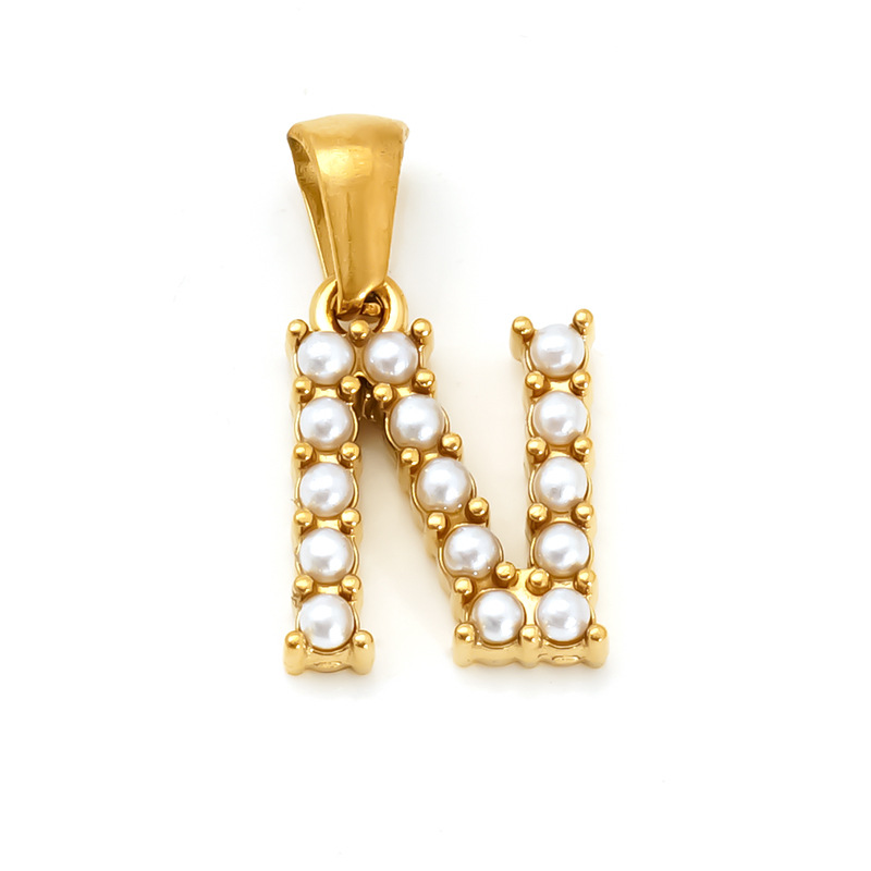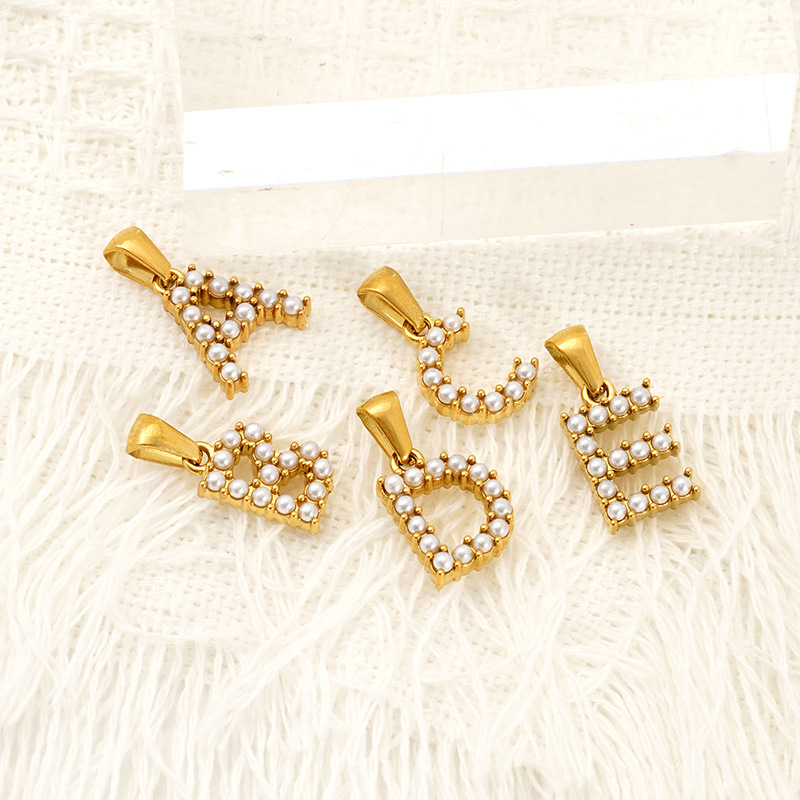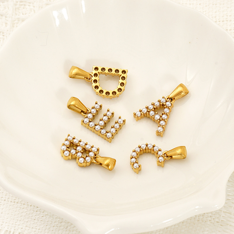 Pendentif de lettre en acier inoxydable, Acier inoxydable 304, avec perle de plastique, Lettre d’alphabet, Plaqué or 18K, DIY & styles différents pour le choix, Vendu par PC