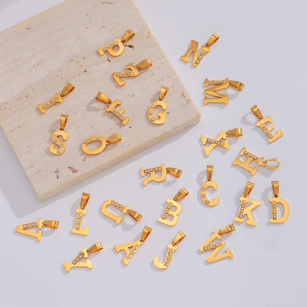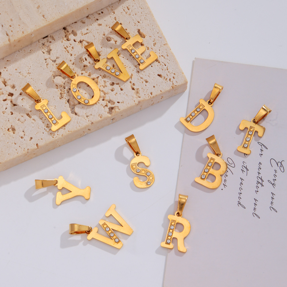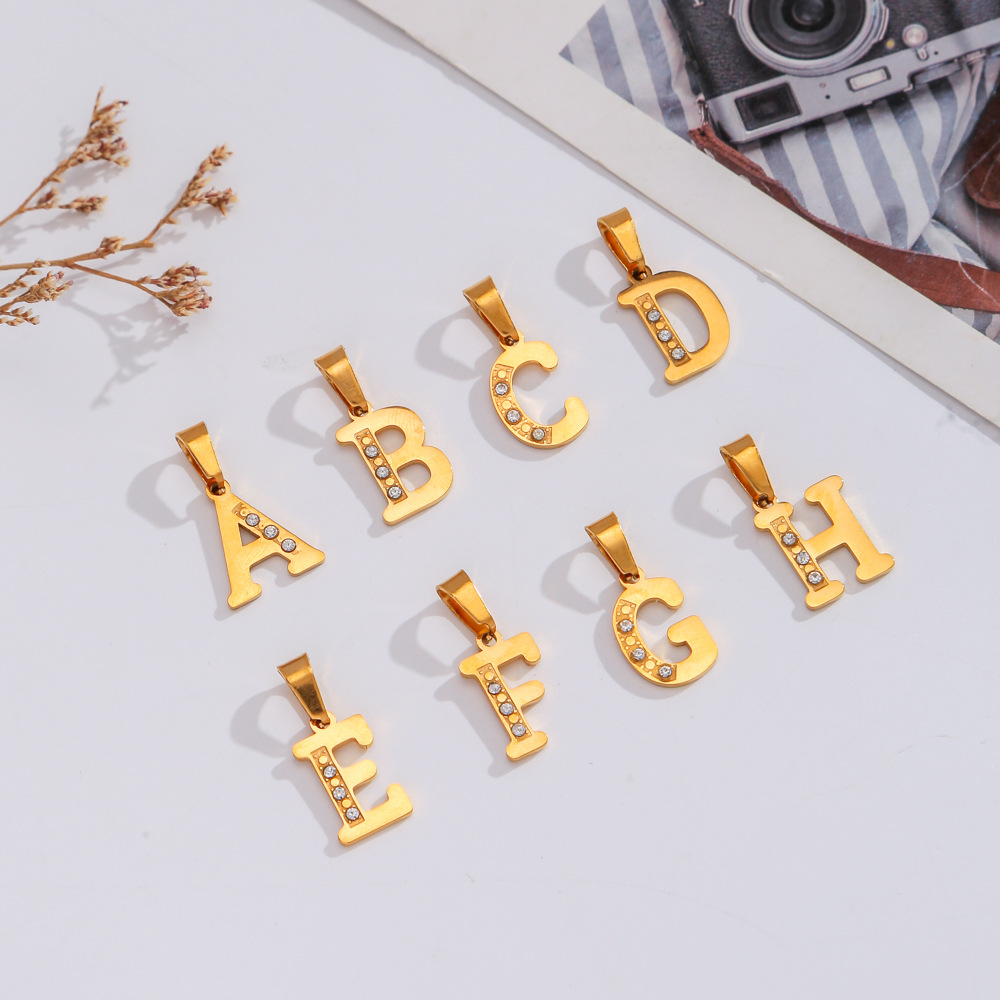 Pendentif de lettre en acier inoxydable, styles différents pour le choix, couleur originale - Environ 1mm, Vendu par PC