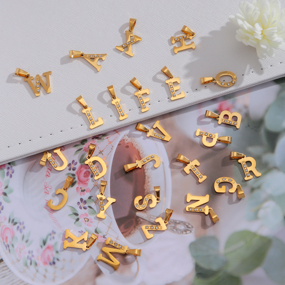 Pendentif de lettre en acier inoxydable, acier inoxydable 316L, Placage de couleur d'or, DIY & pavé de micro zircon, plus de couleurs à choisir, Vendu par paire