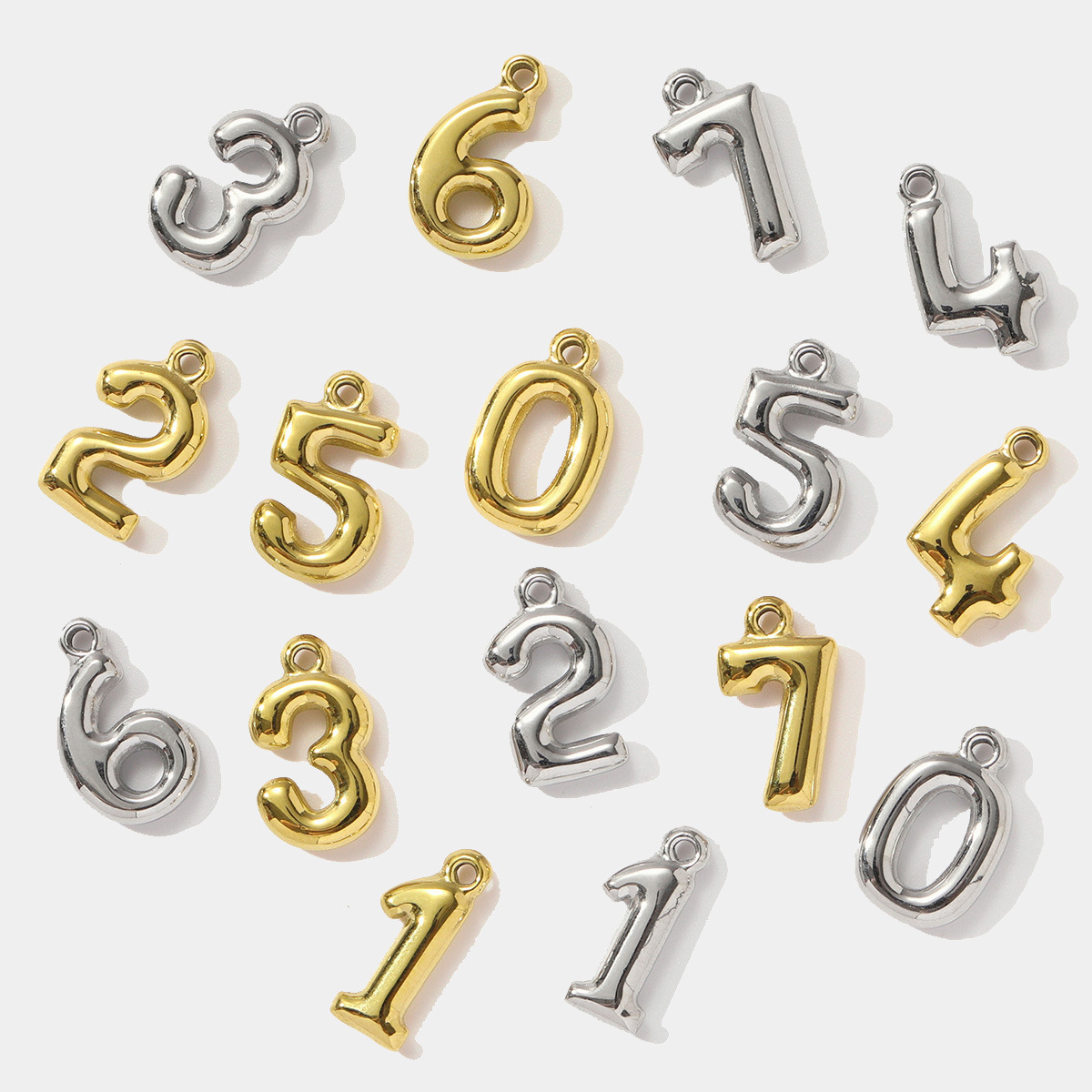Pendentif de lettre en acier inoxydable, Acier inoxydable 304, numéro, Placage, DIY, plus de couleurs à choisir, 3PC/sac, Vendu par sac