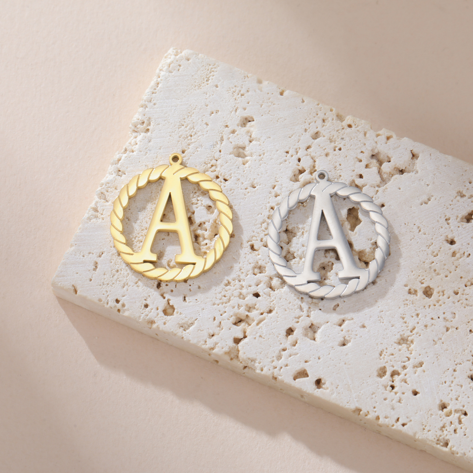 Pendentif de lettre en acier inoxydable, Lettre A, couleur originale Vendu par PC