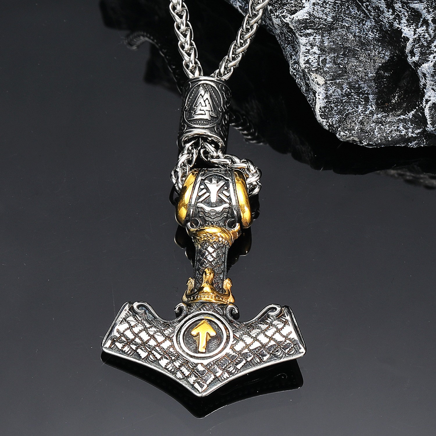 Pendentif en acier inoxydable Thor Hammer, Le marteau de Thor, noircir Environ 5mm, Vendu par PC