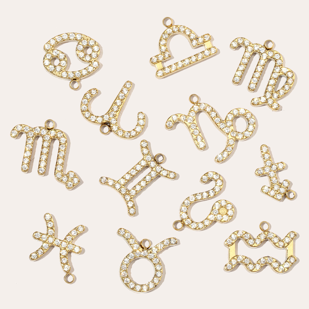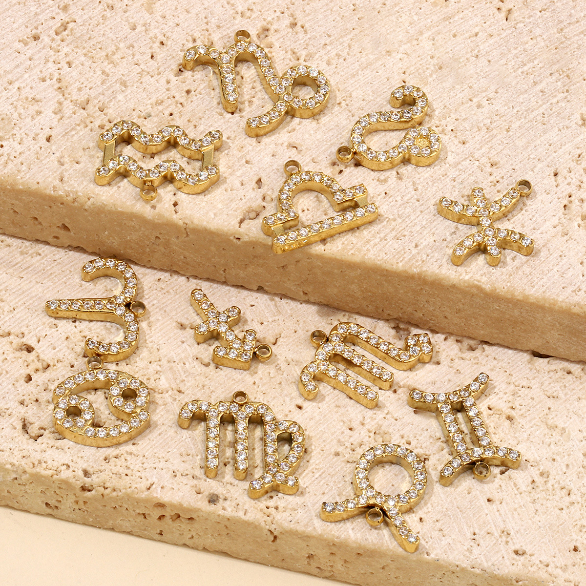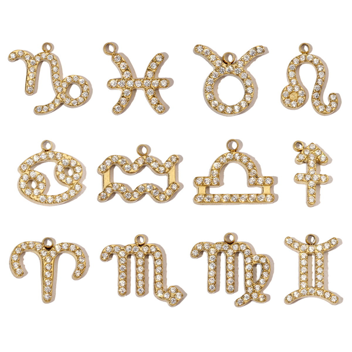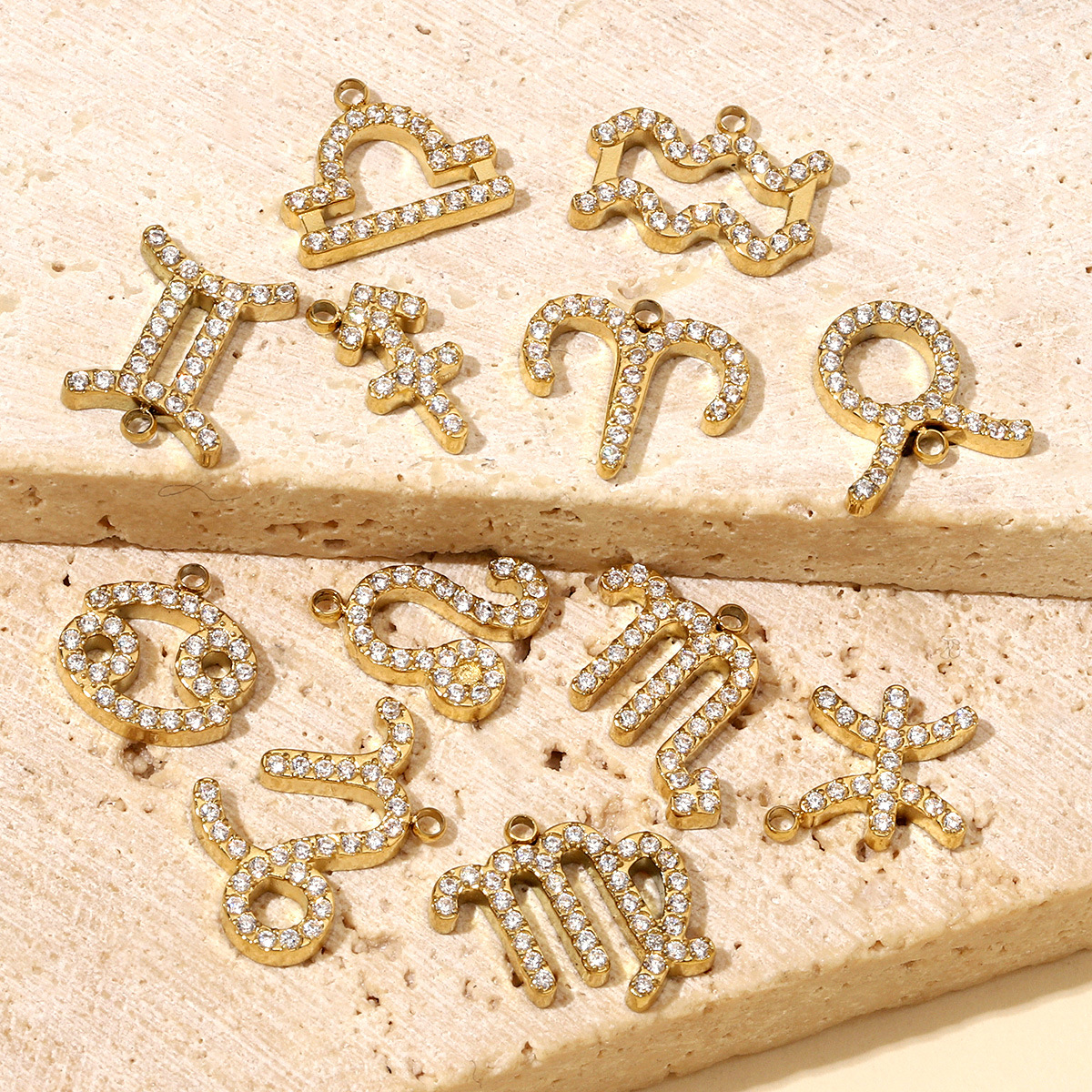 Pendentif en acier inoxydable de constellation, Acier inoxydable 304, 12 Signes du Zodiaque, Placage ionique sous vide, DIY & pavé de micro zircon, plus de couleurs à choisir, 3PC/sac, Vendu par sac