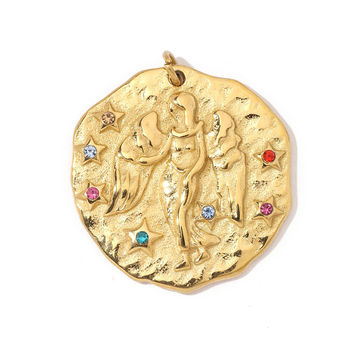 Pendentif en acier inoxydable de constellation, Plat rond, avec le motif de constellation, couleur originale Environ Vendu par PC