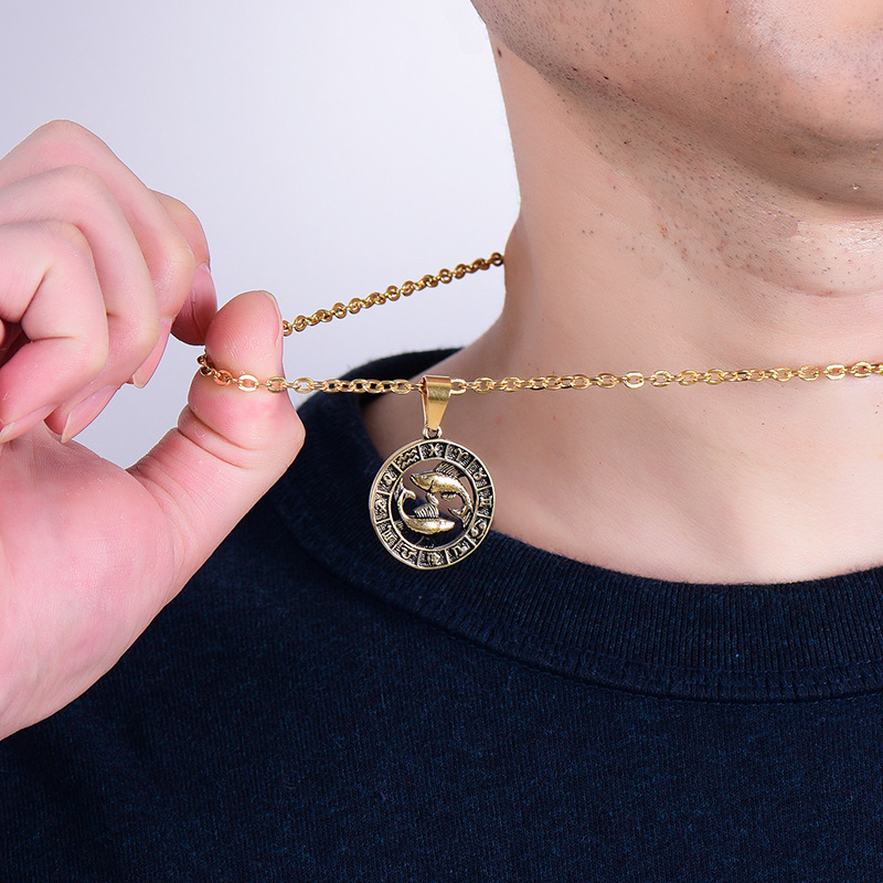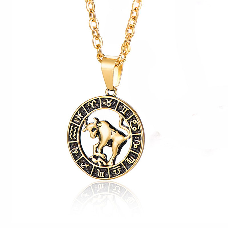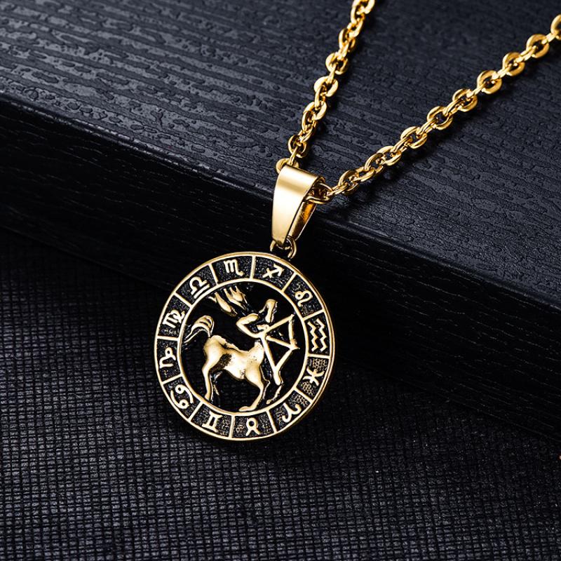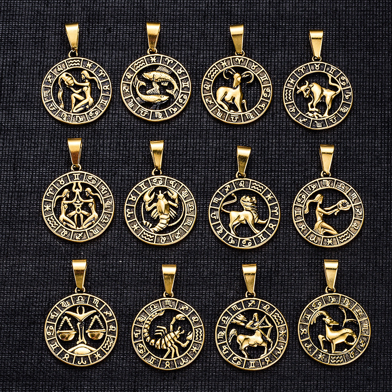 Pendentif en acier inoxydable de constellation, Acier inoxydable 304, 12 Signes du Zodiaque, Placage de couleur d'or, Vintage & DIY & styles différents pour le choix, 25x28mm, Vendu par PC