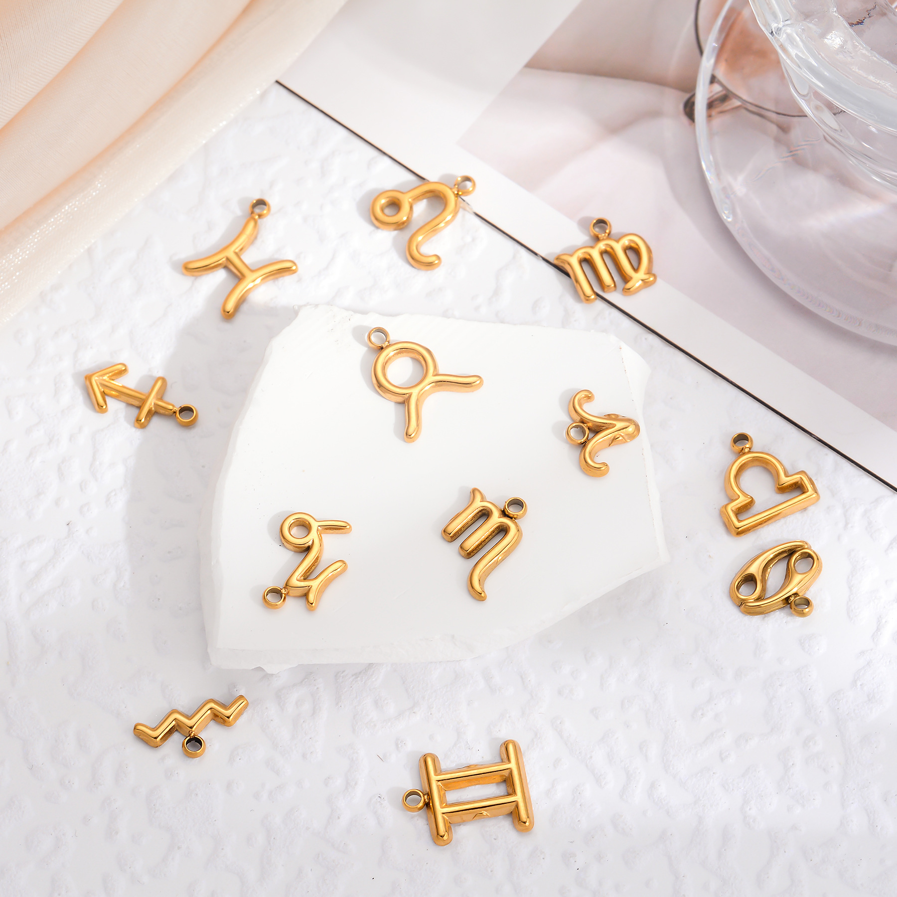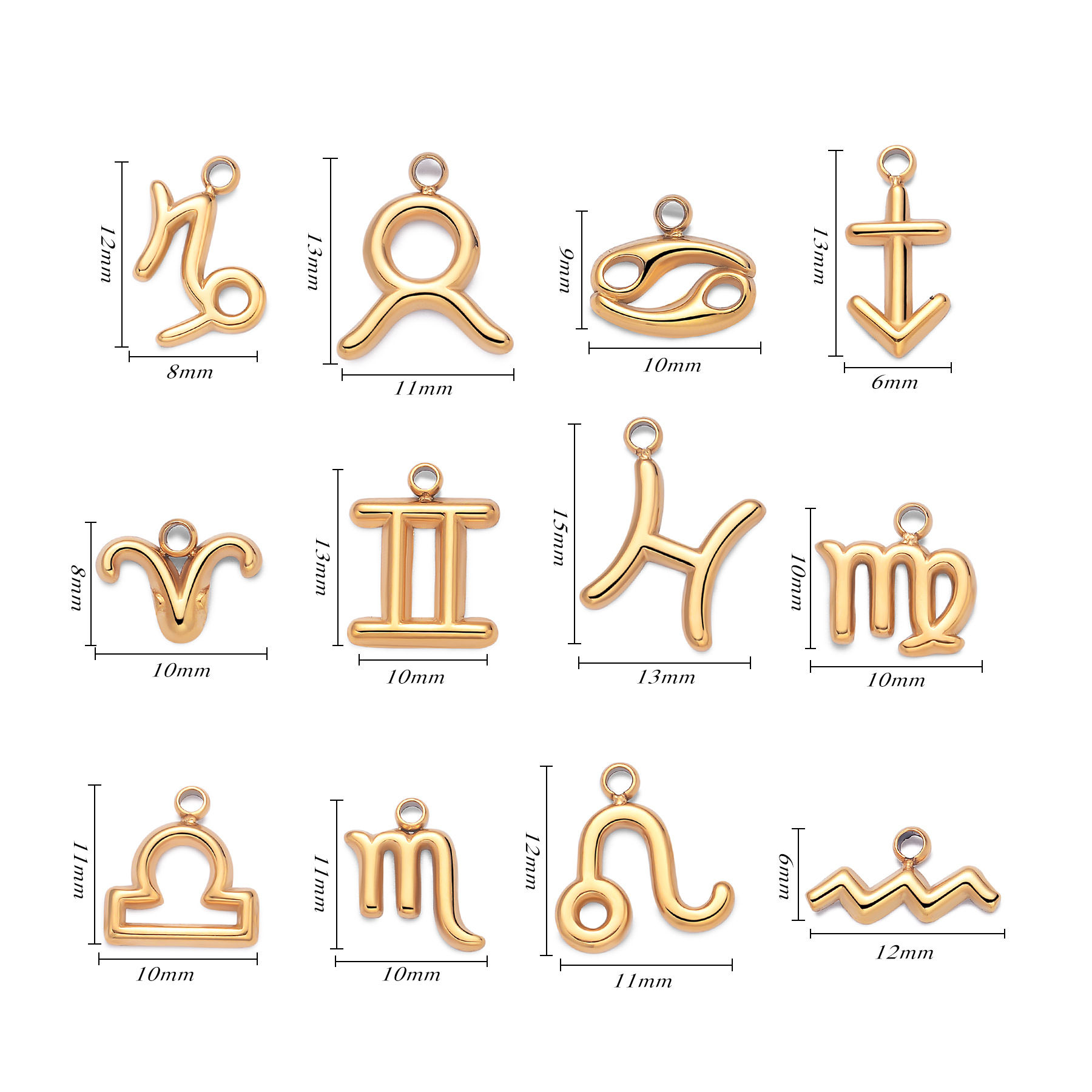 Pendentif en acier inoxydable de constellation, Acier inoxydable 304, 12 Signes du Zodiaque, Placage de couleur d'or, DIY, doré, Vendu par PC