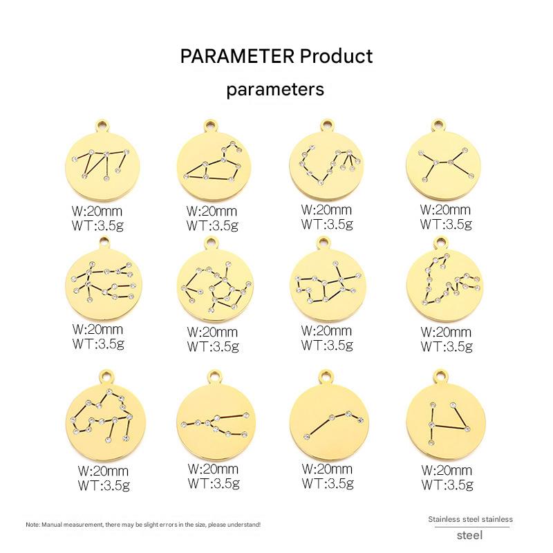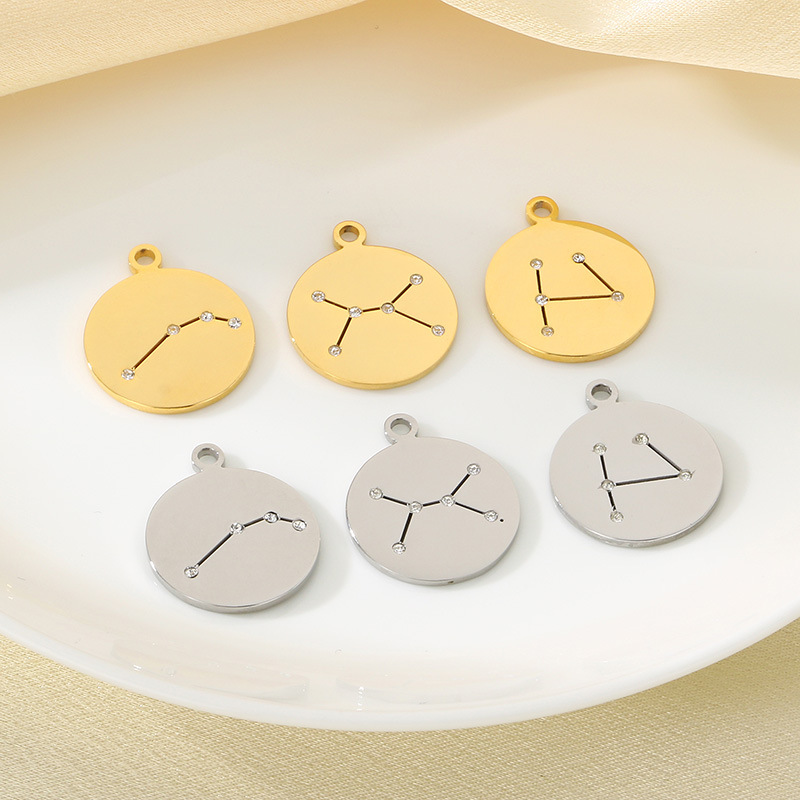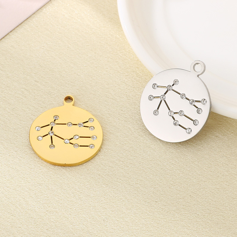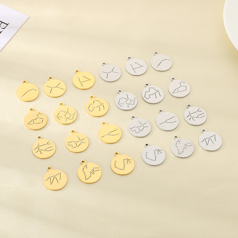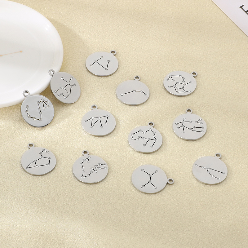 Pendentif en acier inoxydable de constellation, Plat rond, avec le motif de constellation, couleur originale Environ Vendu par PC