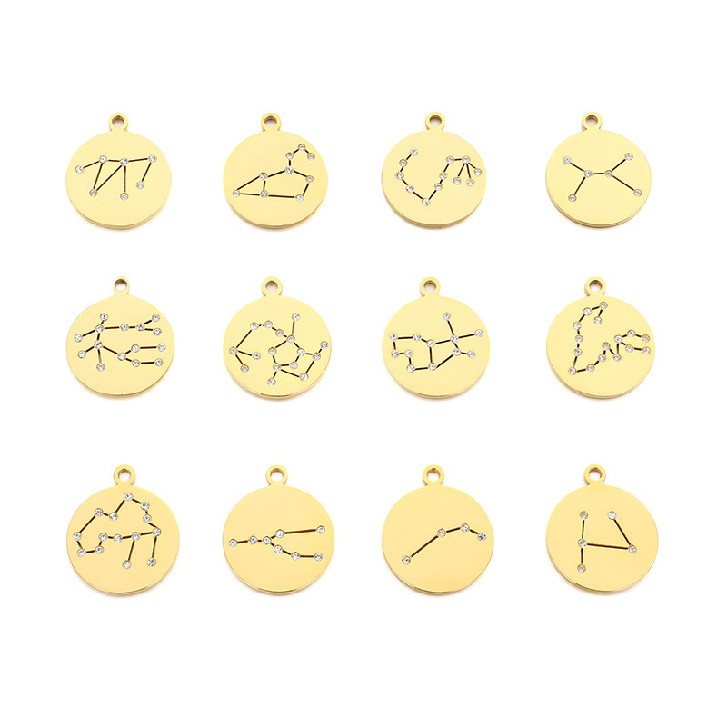 Pendentif en acier inoxydable de constellation, Acier inoxydable 304, 12 Signes du Zodiaque, Placage, DIY & avec strass, plus de couleurs à choisir, 20mm, 10PC/sac, Vendu par sac
