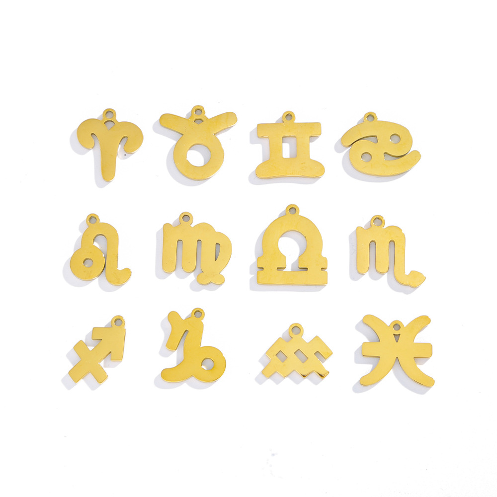 Pendentif en acier inoxydable de constellation, Acier inoxydable 304, 12 Signes du Zodiaque, Placage de couleur d'or, DIY, plus de couleurs à choisir, 10PC/sac, Vendu par sac
