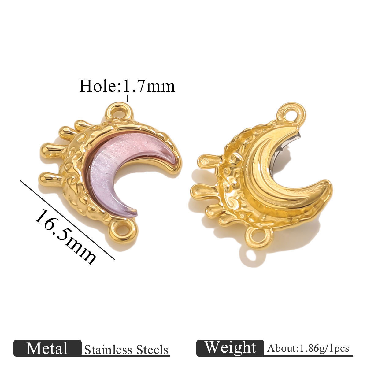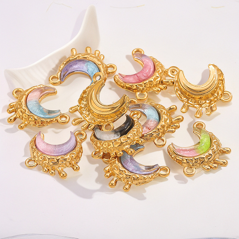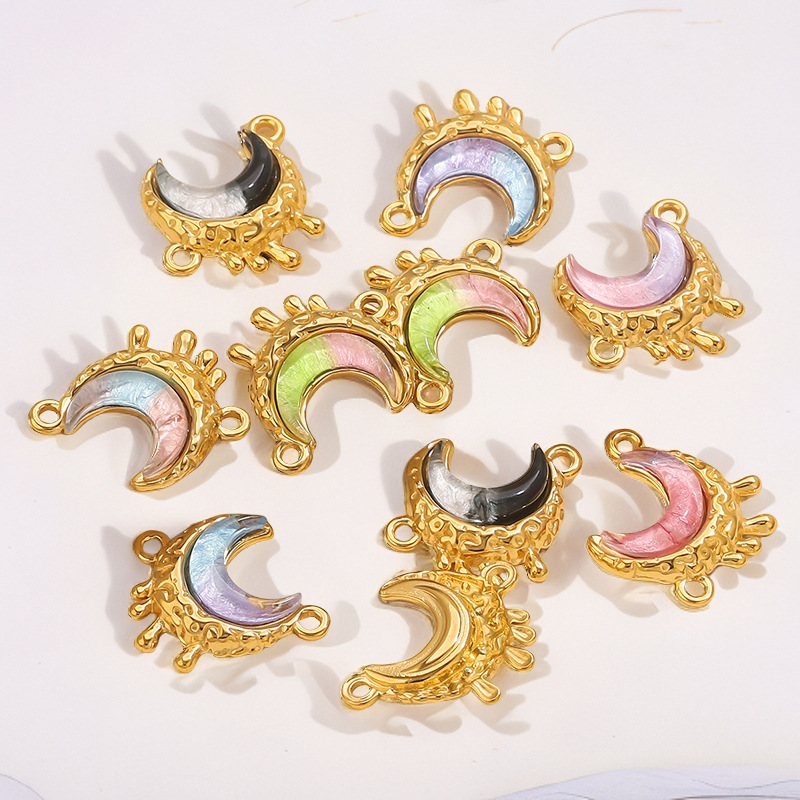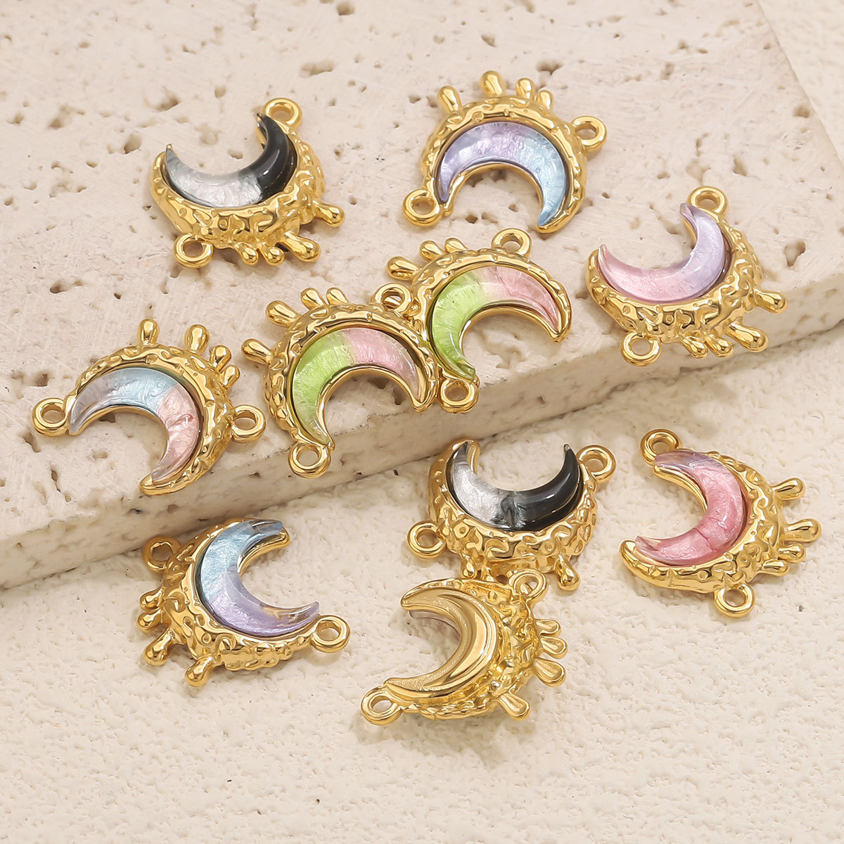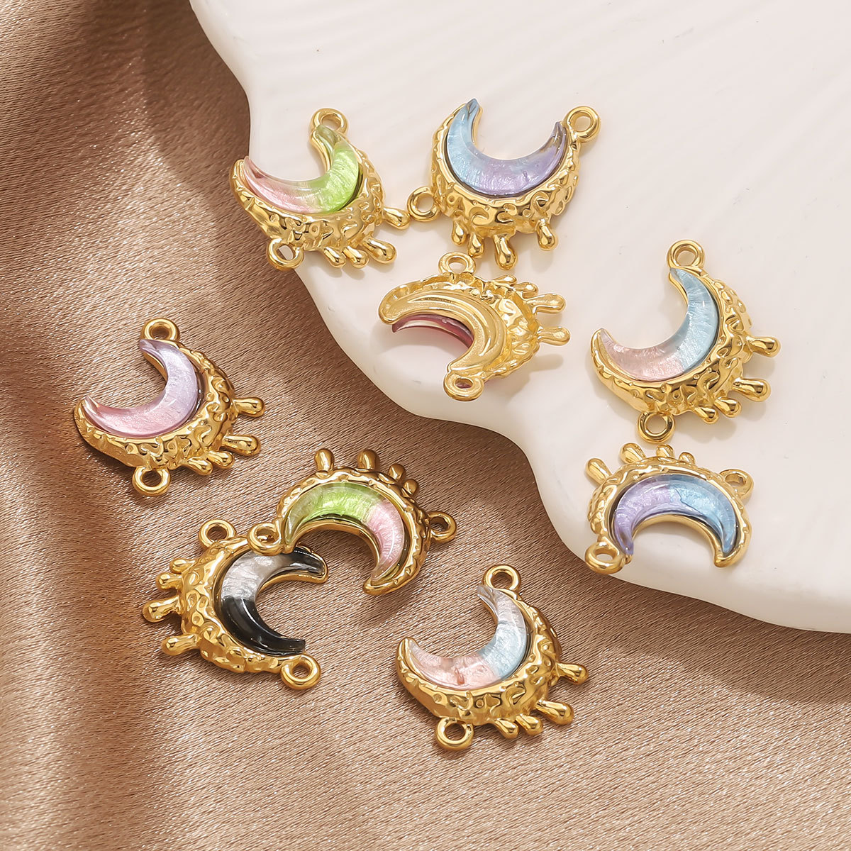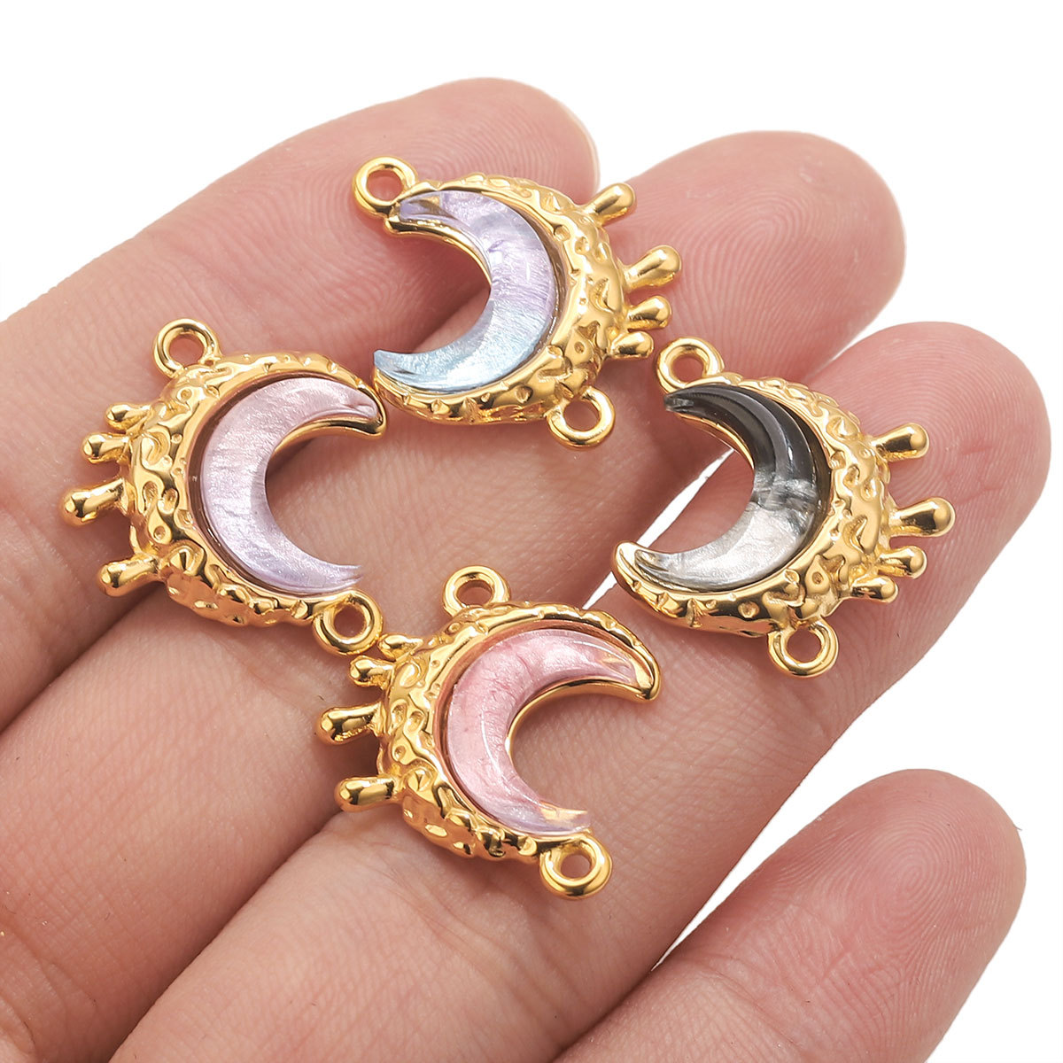 Pendentif en acier inoxydable résine, Acier inoxydable 304, avec résine, lune, Placage de couleur d'or, DIY & double trou, plus de couleurs à choisir, 3PC/sac, Vendu par sac
