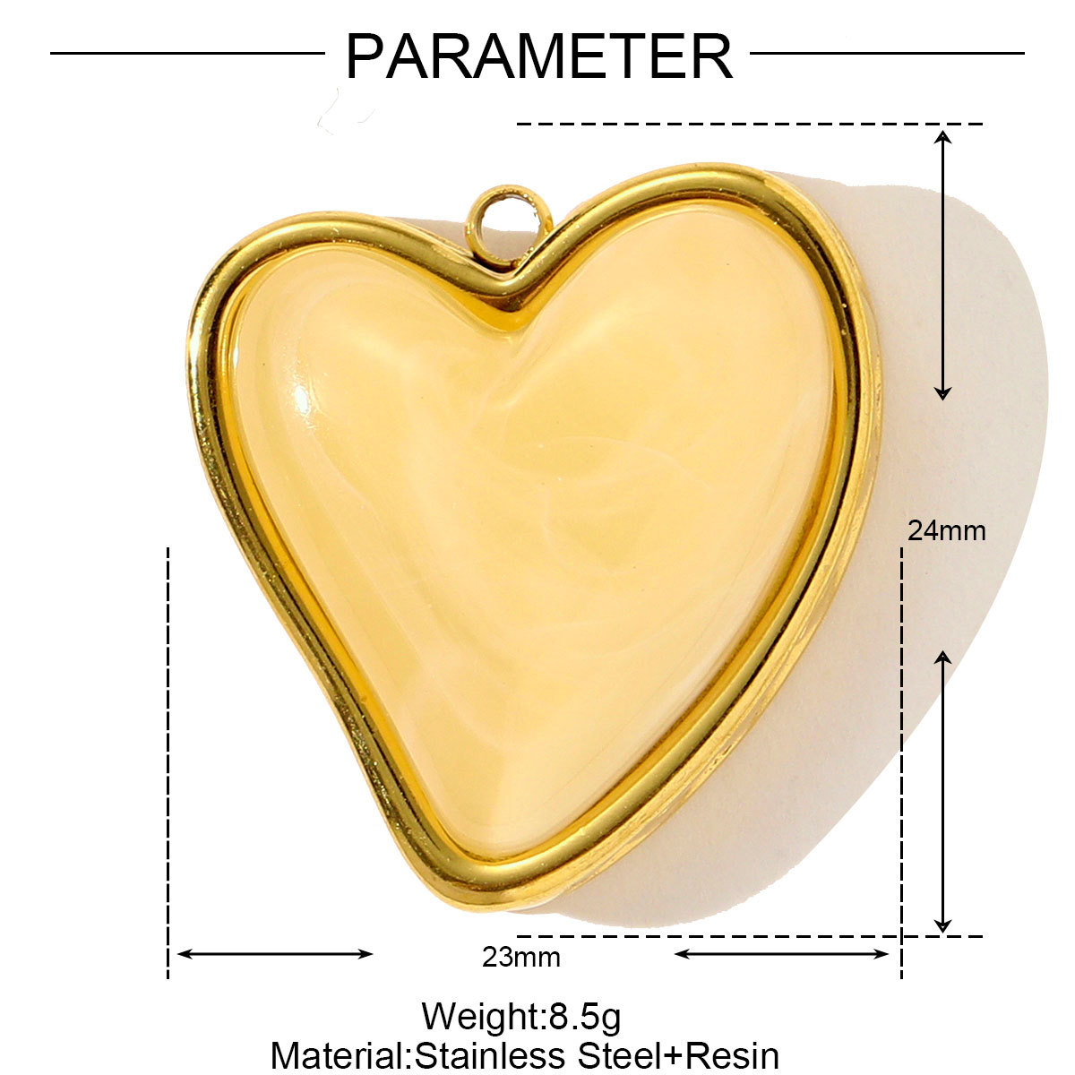 Pendentif en acier inoxydable résine, avec résine, coeur, Placage de couleur d'or, facettes & poudre colorée Environ Vendu par PC