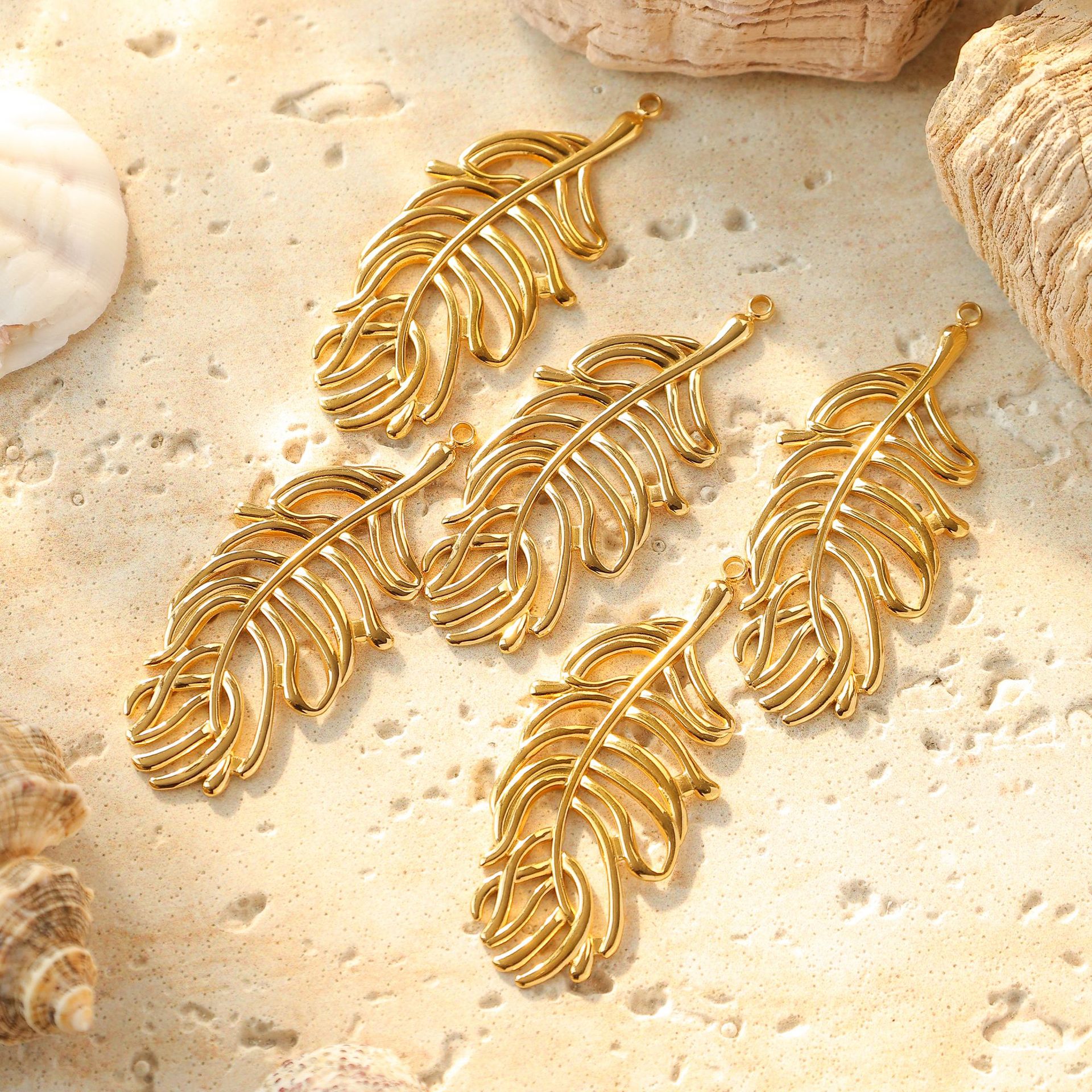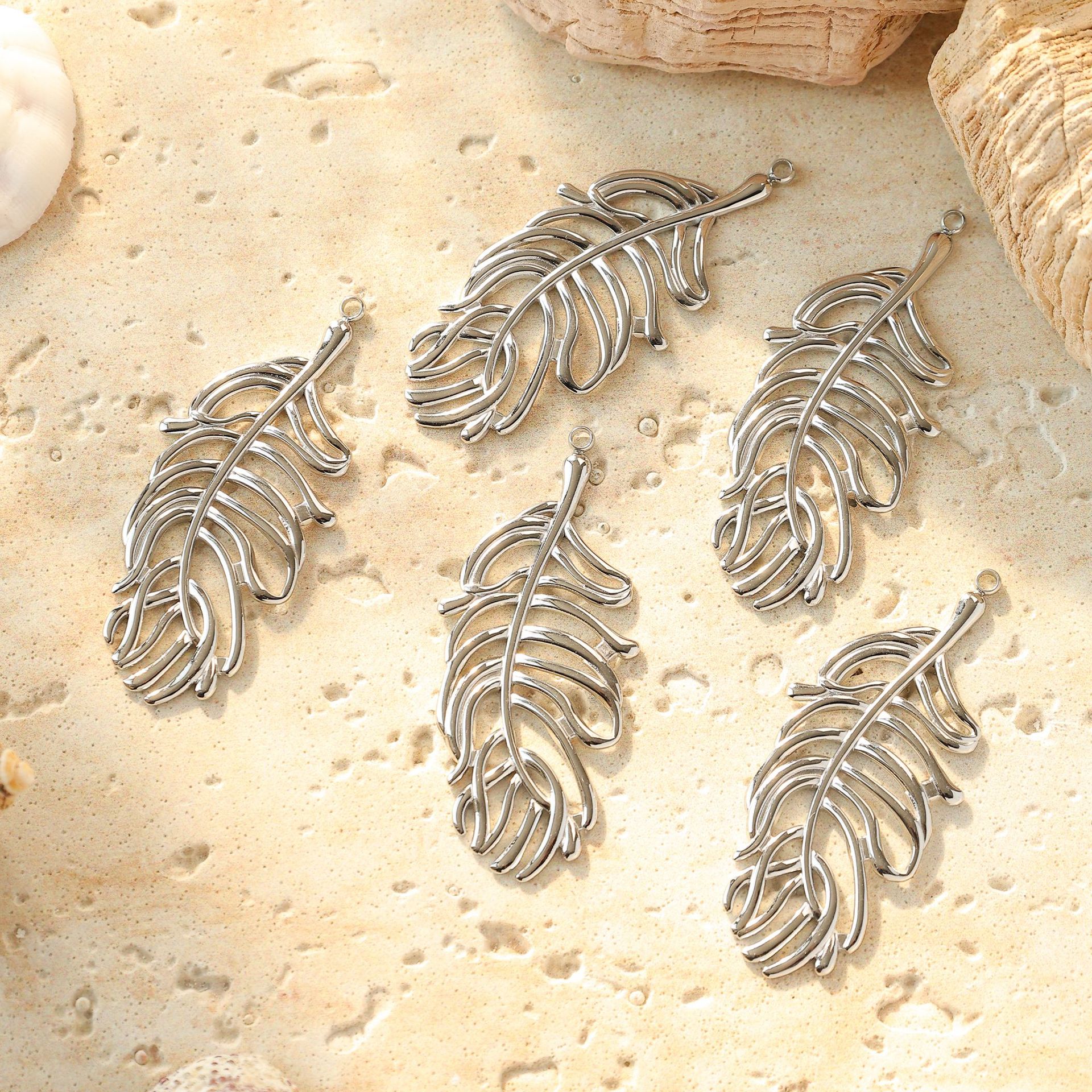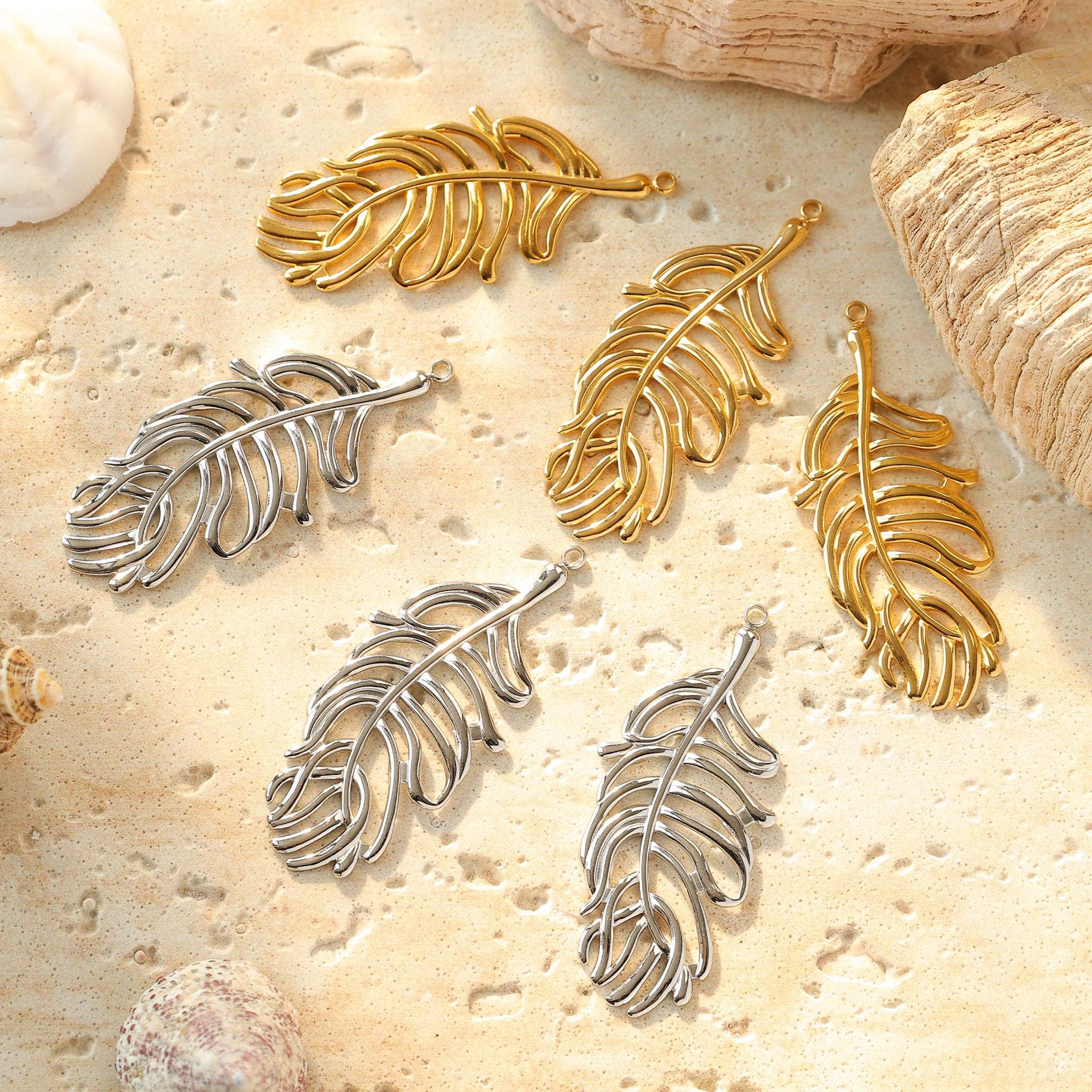 Pendentif plume en acier inoxydable, forme de plume, couleur originale Environ 2mm Vendu par sac