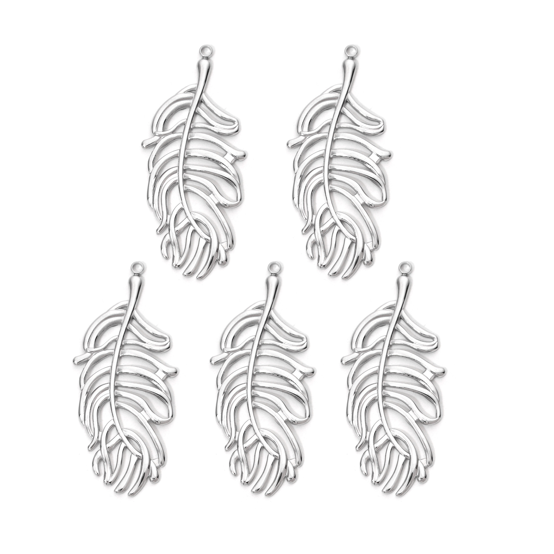 Pendentif plume en acier inoxydable, forme de plume, Placage, pour homme, 59mm Environ 1-3mm, Vendu par PC