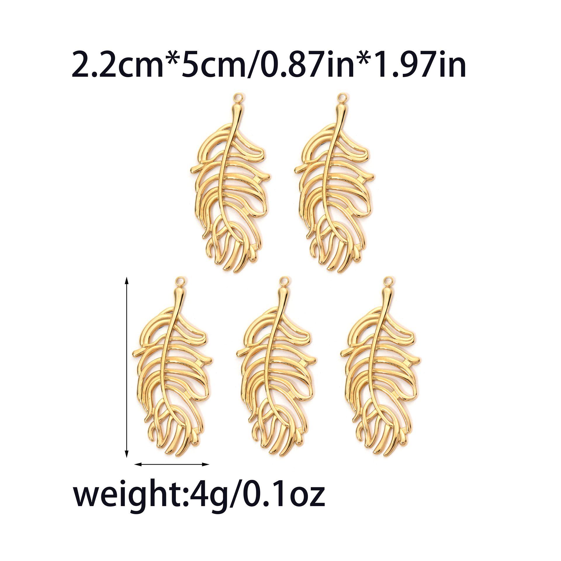 Pendentif plume en acier inoxydable, Acier inoxydable 304, forme de plume, Placage ionique sous vide, DIY, plus de couleurs à choisir, 22x50mm, 10PC/sac, Vendu par sac