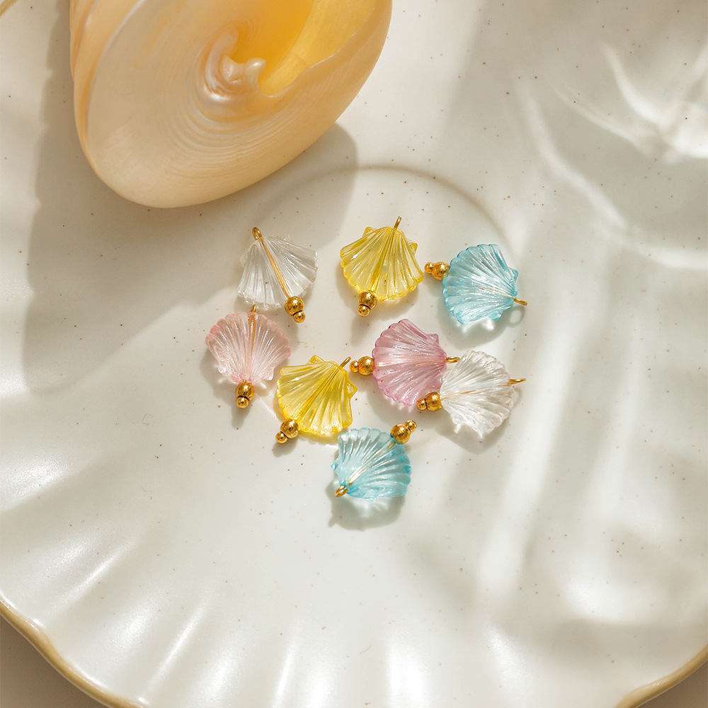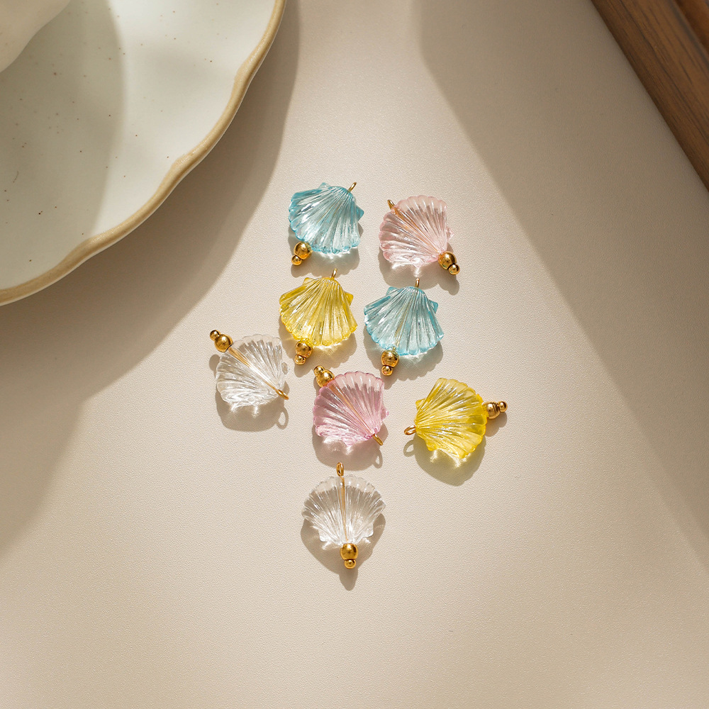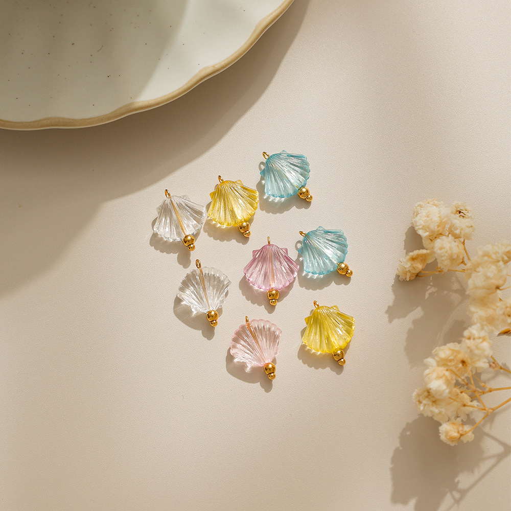 Pendentifs acryliques en translucides, Acier inoxydable 304, avec Acrylique, coquille, Placage de couleur d'or, DIY, plus de couleurs à choisir, 10PC/sac, Vendu par sac
