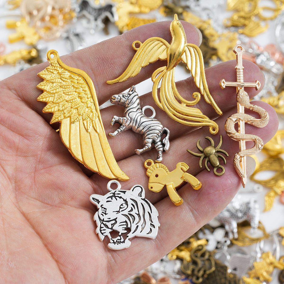 Pendentifs animaux en alliage de zinc, Placage, envoyé au hasard & DIY, 100sol/sac, Vendu par sac
