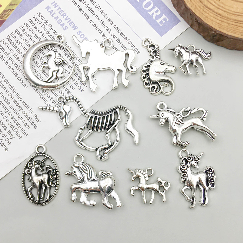 Pendentifs animaux en alliage de zinc, Licorne, Placage, DIY, plus de couleurs à choisir, 100PC/sac, Vendu par sac