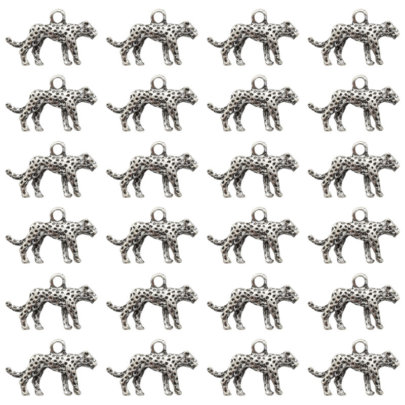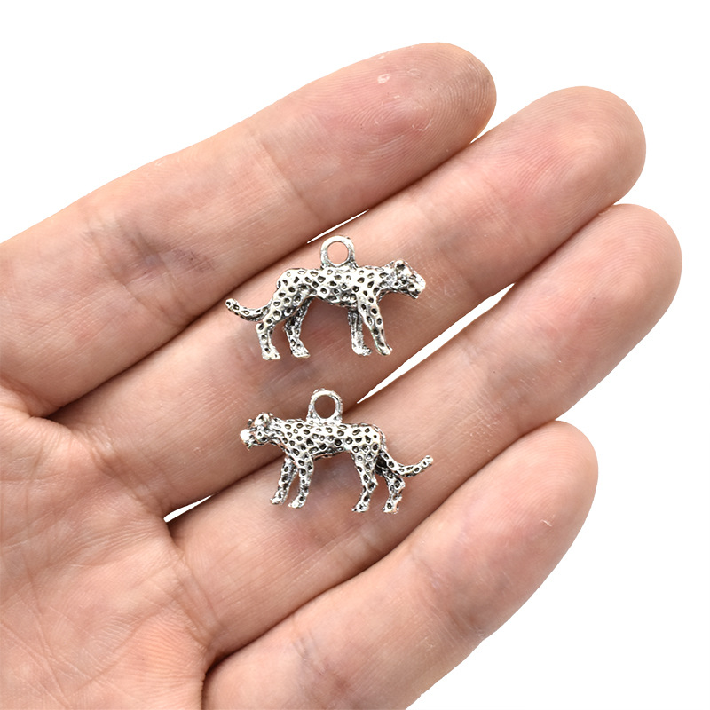 Pendentifs animaux en alliage de zinc, léopard, Plaqué de couleur d'argent, DIY, 24x15mm, 100PC/sac, Vendu par sac
