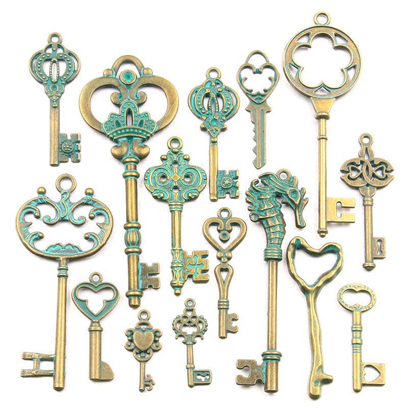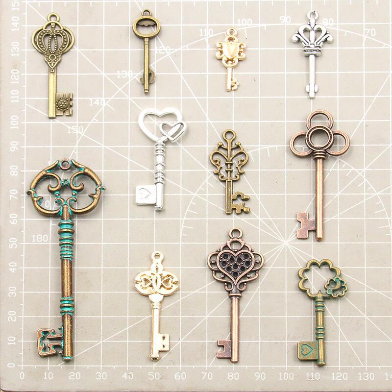 Pendentifs clé en alliage de zinc, Placage, envoyé au hasard & DIY, plus de couleurs à choisir, Vendu par sac