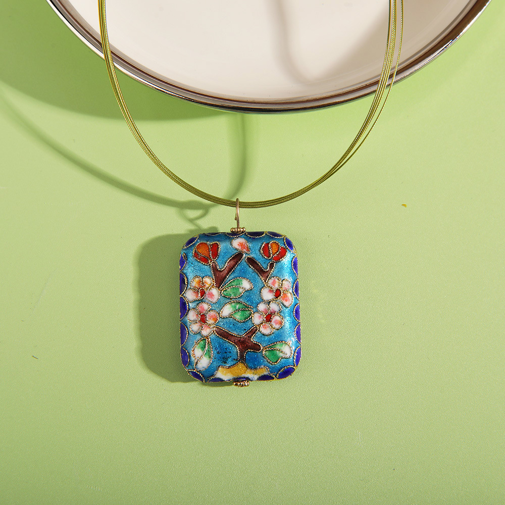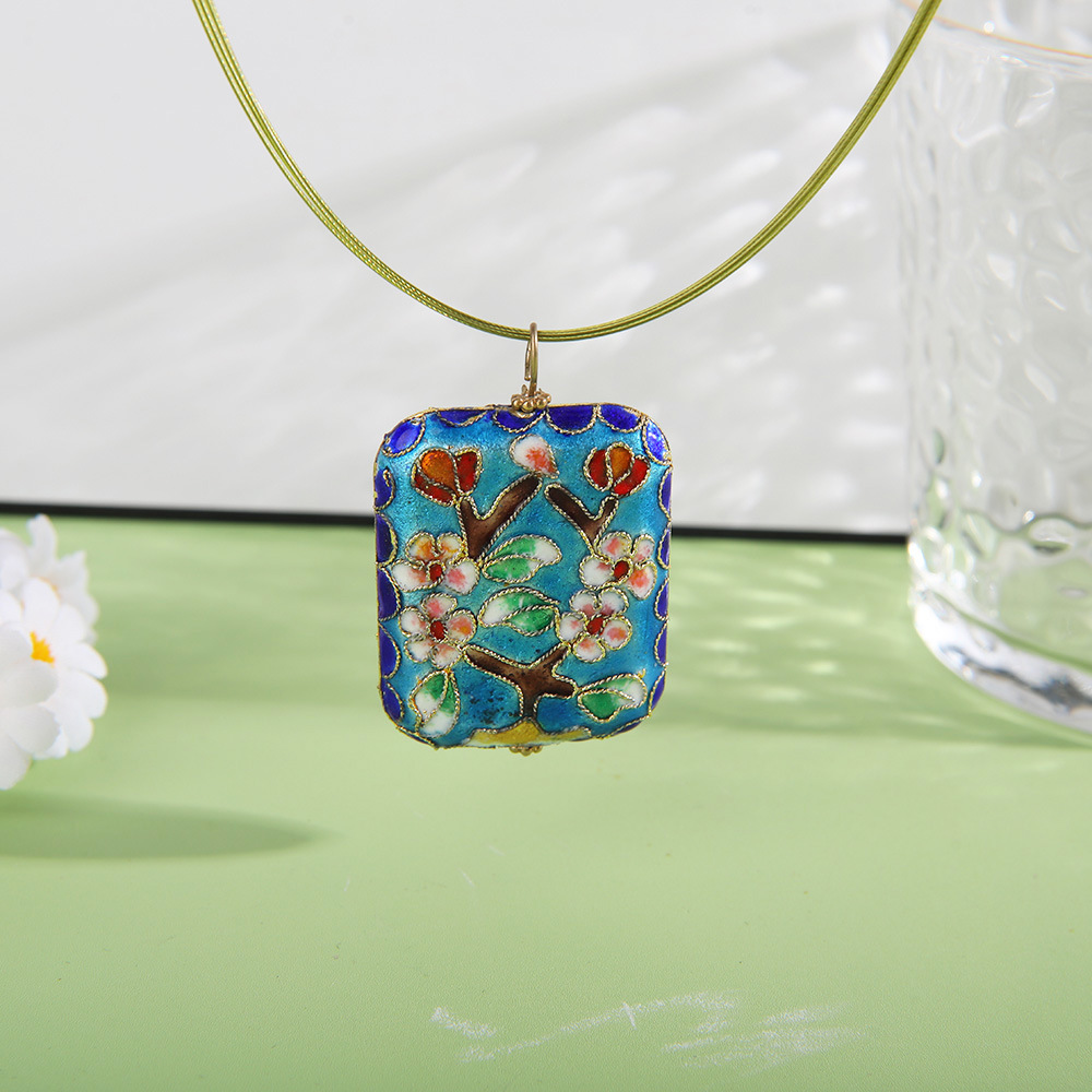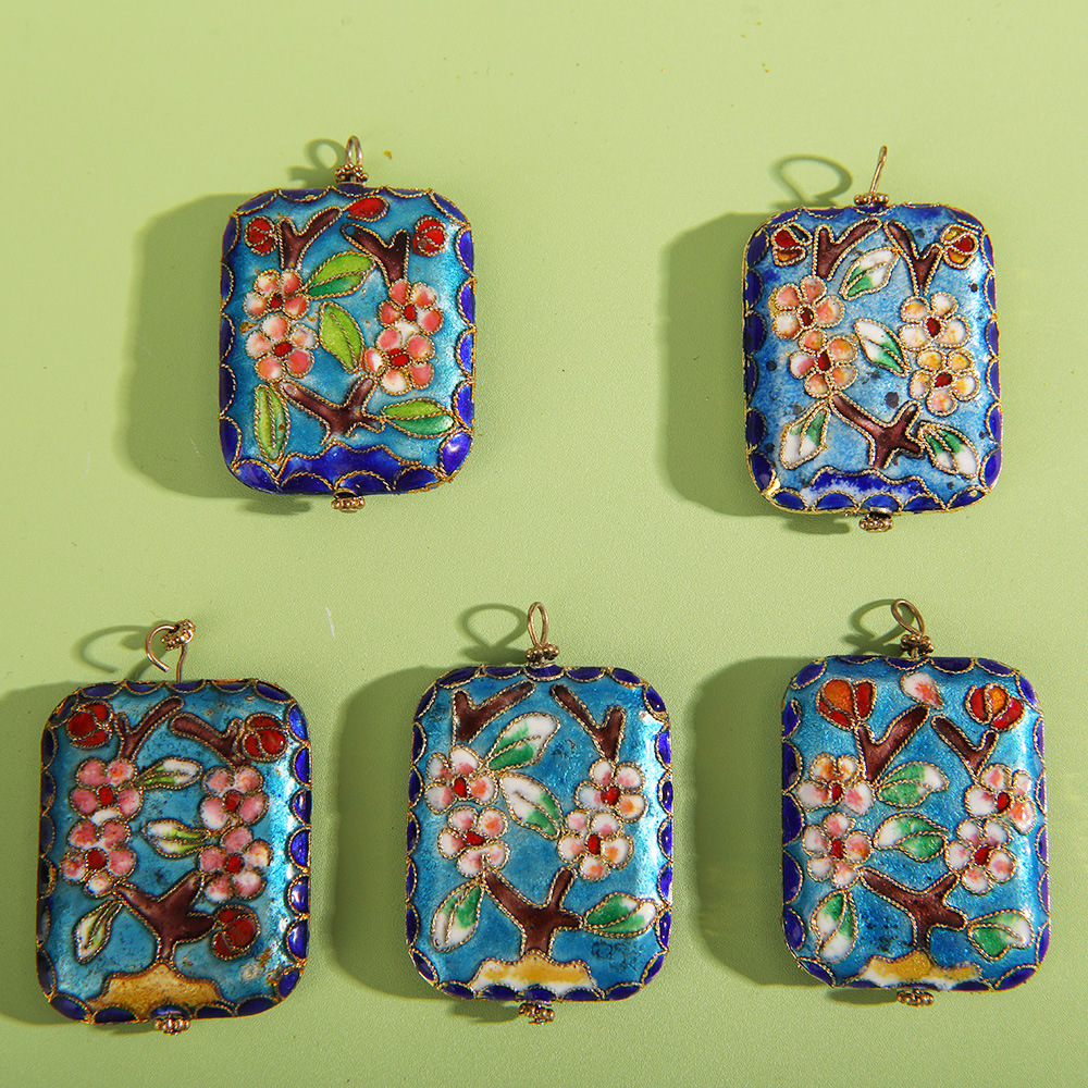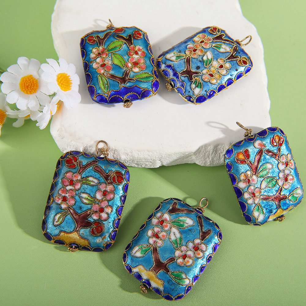 Pendentifs cloisonnés, cloisonne, rectangle, DIY & émail, bleu, 40x32mm, Vendu par PC