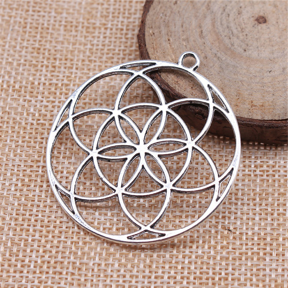 Pendentifs creux en alliage de zinc, Rond, Placage, DIY, 48x44mm, Vendu par PC