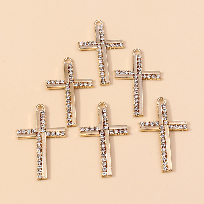 Pendentifs croix en alliage de zinc , Placage, DIY & avec strass, 5PC/sac, Vendu par sac