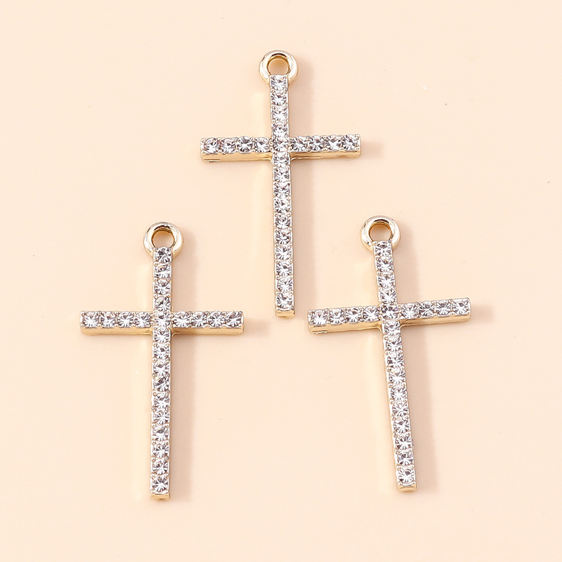 Pendentifs croix en alliage de zinc  , Placage, DIY & avec strass, plus de couleurs à choisir, 10PC/sac, Vendu par sac