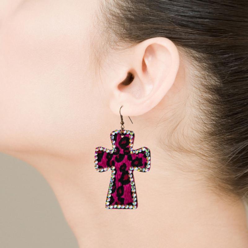 Pendentifs croix en alliage de zinc  , avec cuir PU, styles différents pour le choix & pour femme & avec strass, plus de couleurs à choisir, Vendu par paire