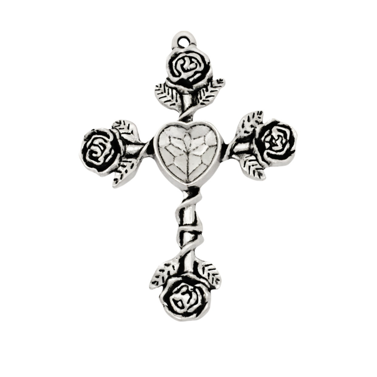Pendentifs croix en alliage de zinc  , Plaqué de couleur d'argent, DIY, 50.9x37.9mm, 100PC/sac, Vendu par sac