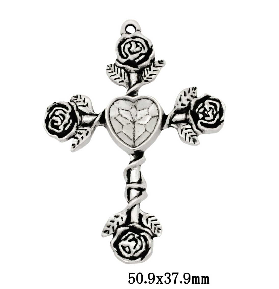 Pendentifs croix en alliage de zinc , Plaqué de couleur d'argent, DIY, 50.9x37.9mm, 100PC/sac, Vendu par sac