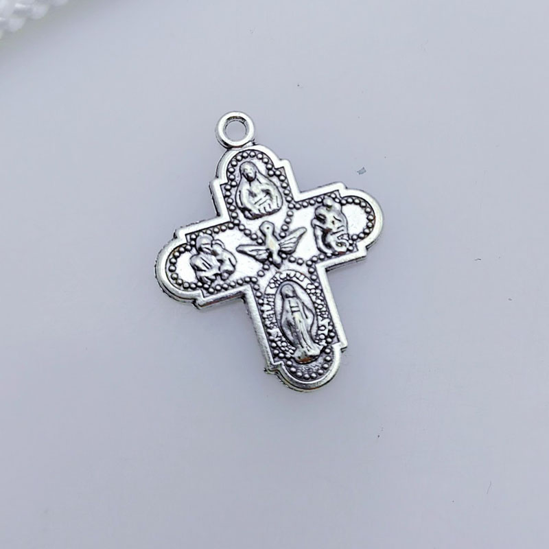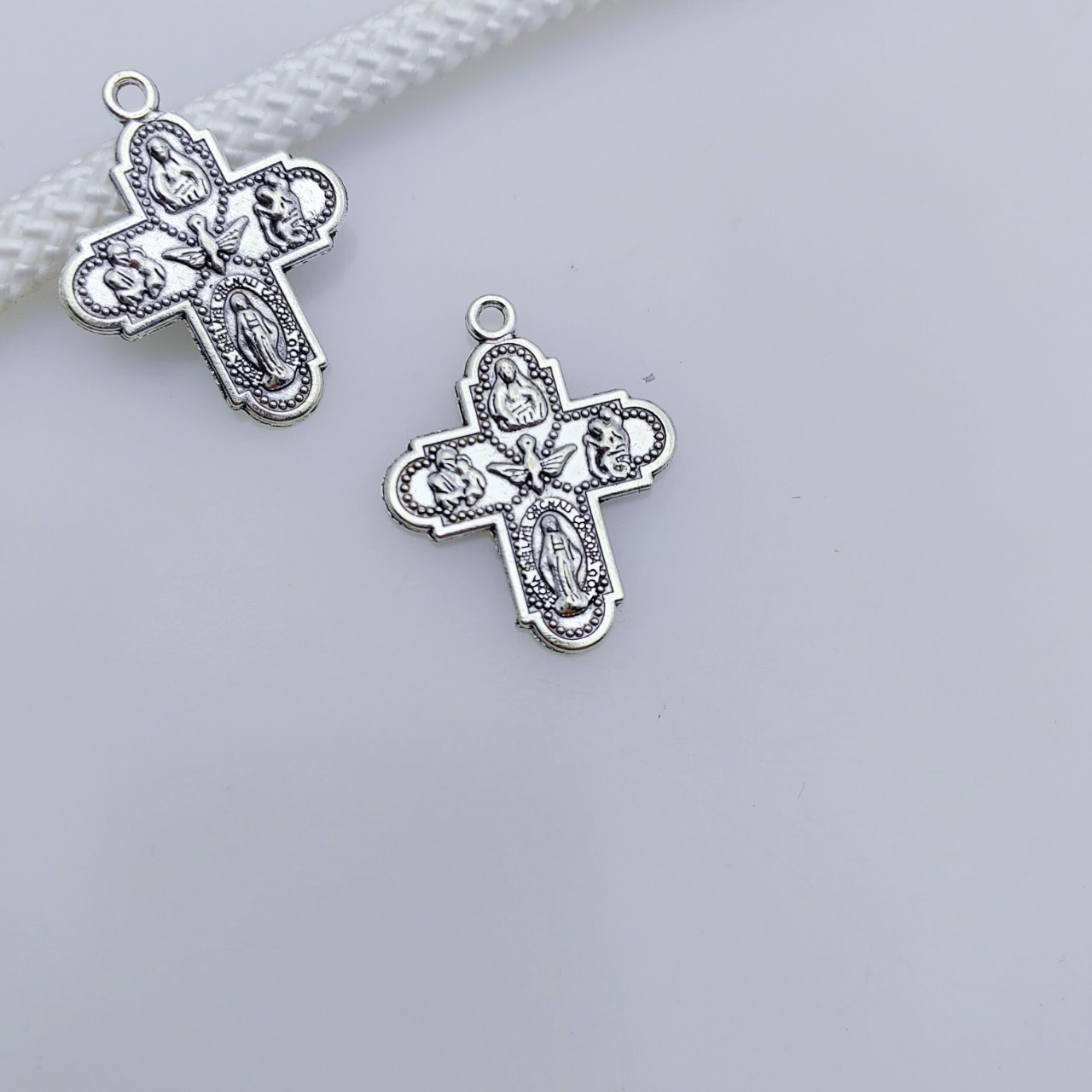 Pendentifs croix en alliage de zinc  , Plaqué de couleur d'argent, DIY, 24x30mm, Environ 100PC/sac, Vendu par sac
