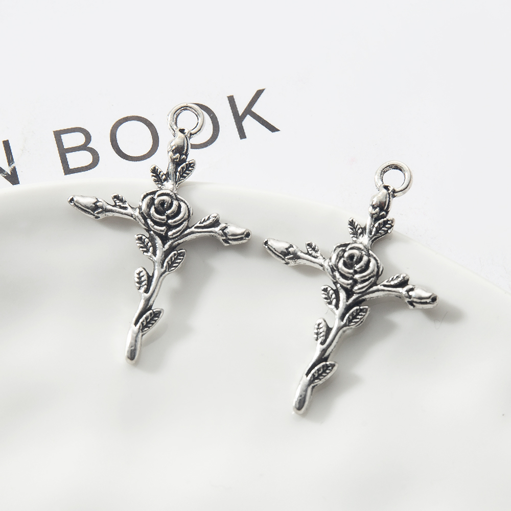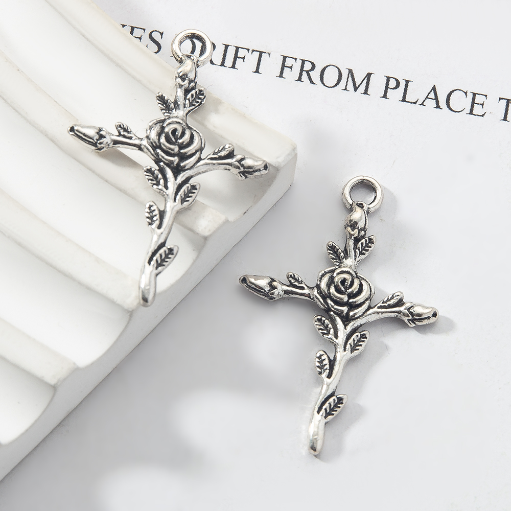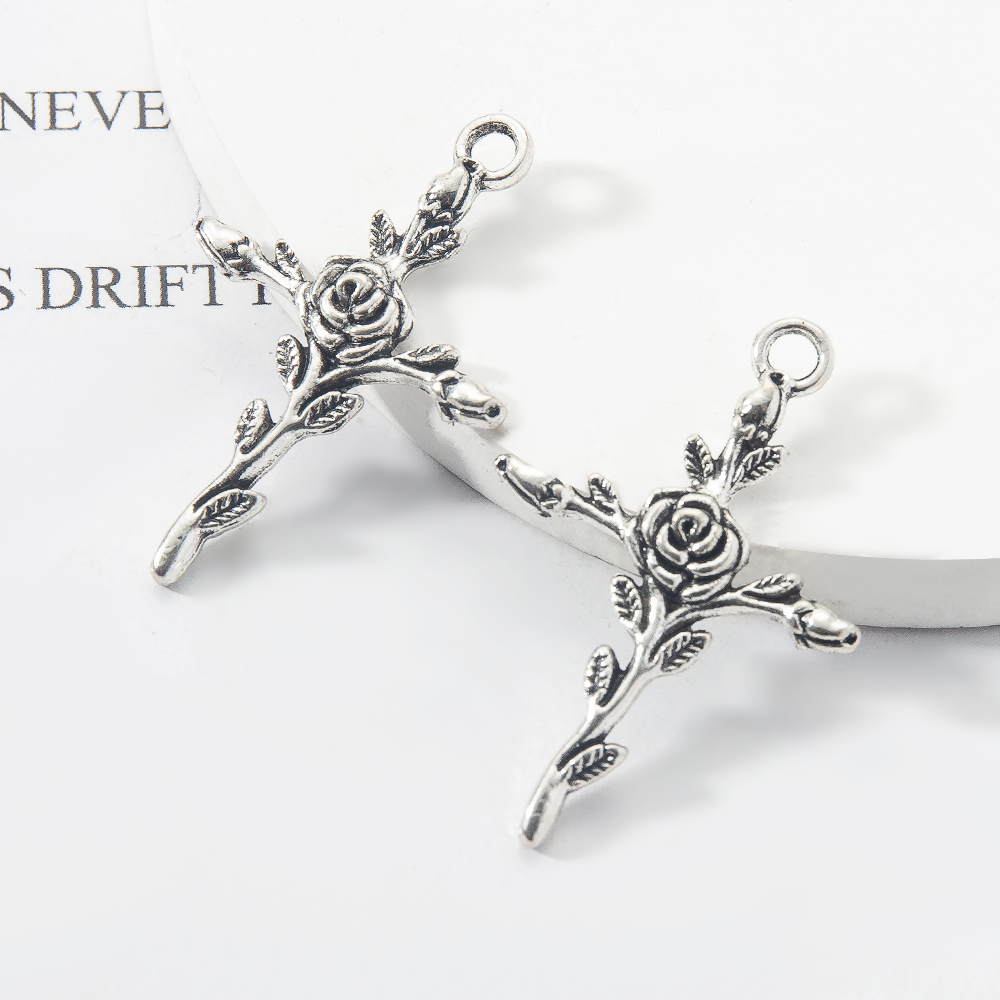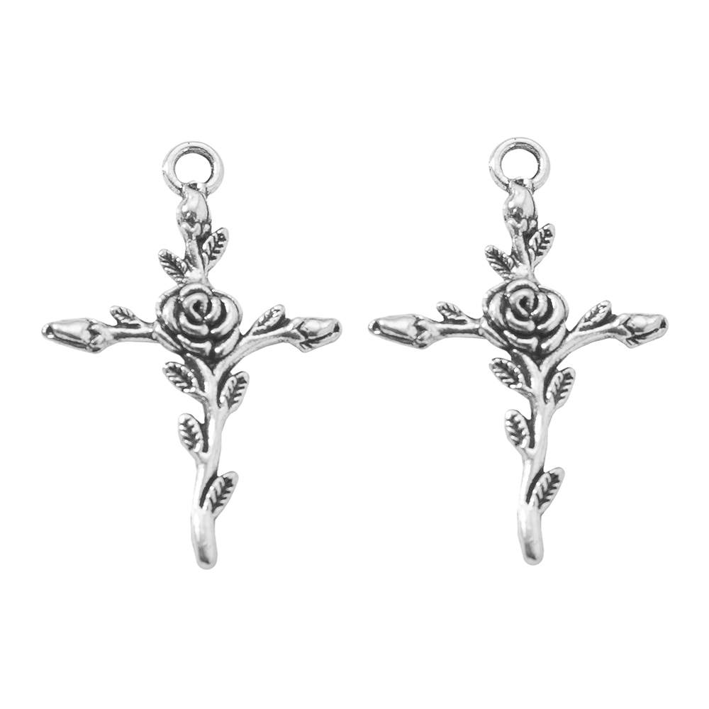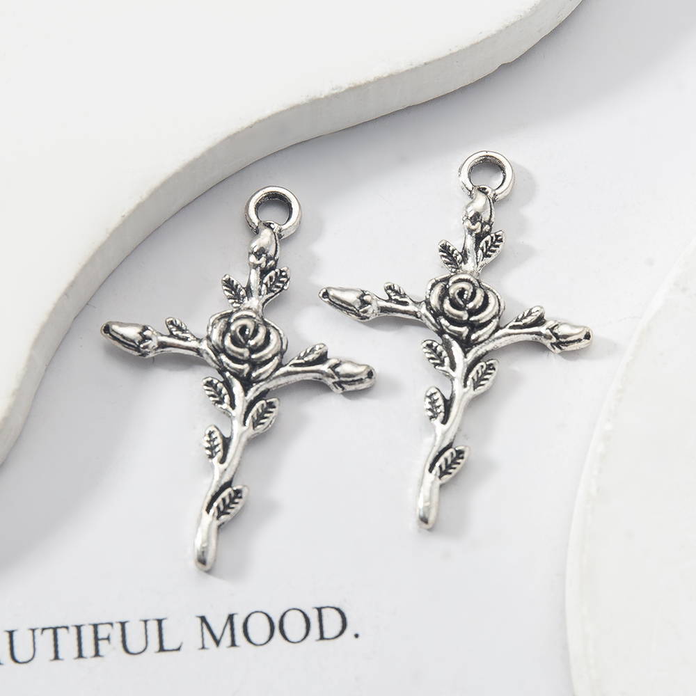 Pendentifs croix en alliage de zinc  , Placage de couleur argentée, DIY, argent, 23.5x3x34.8mm, Vendu par sac