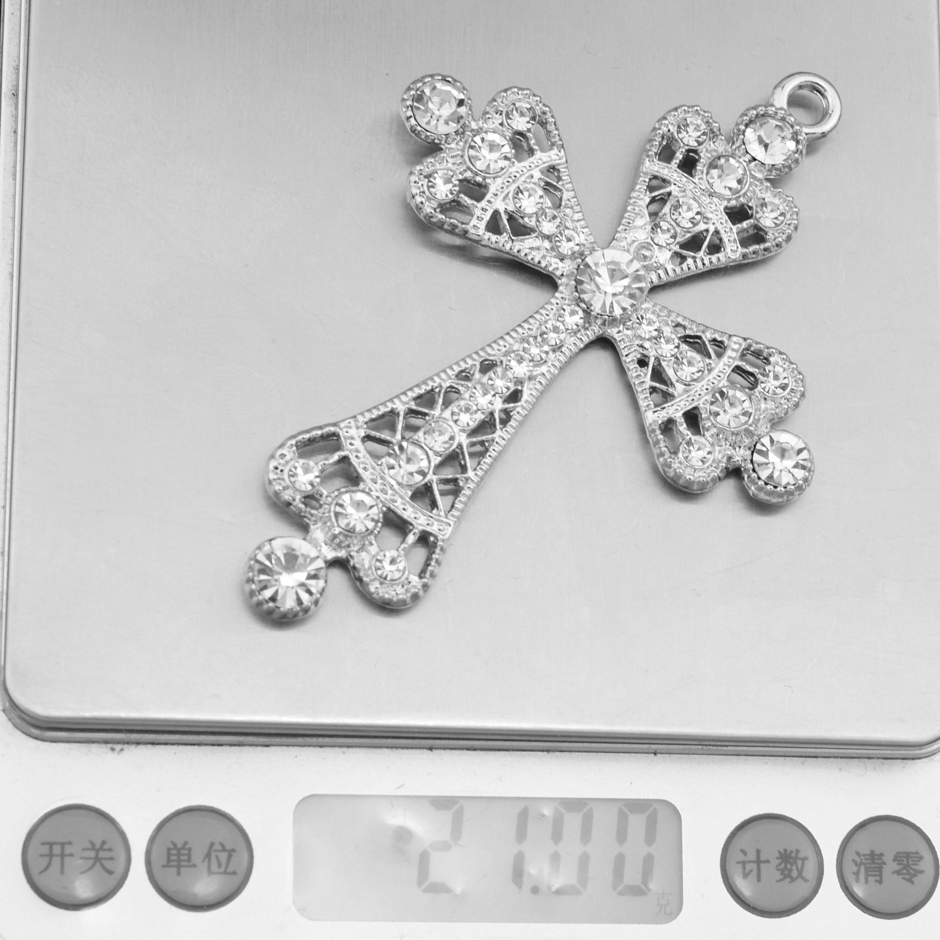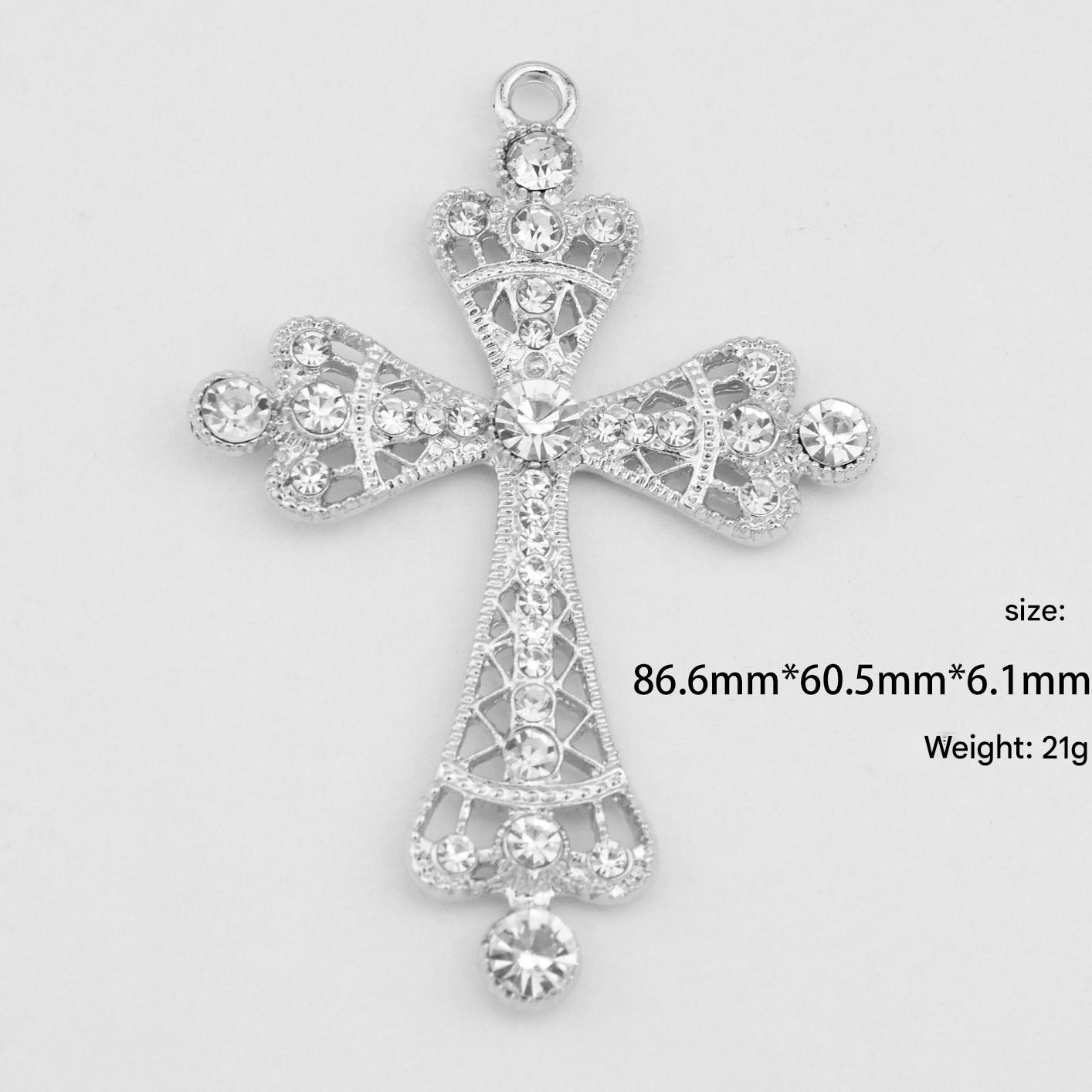 Pendentifs croix en alliage de zinc  , Placage de couleur argentée, DIY & avec strass, argent, Vendu par PC