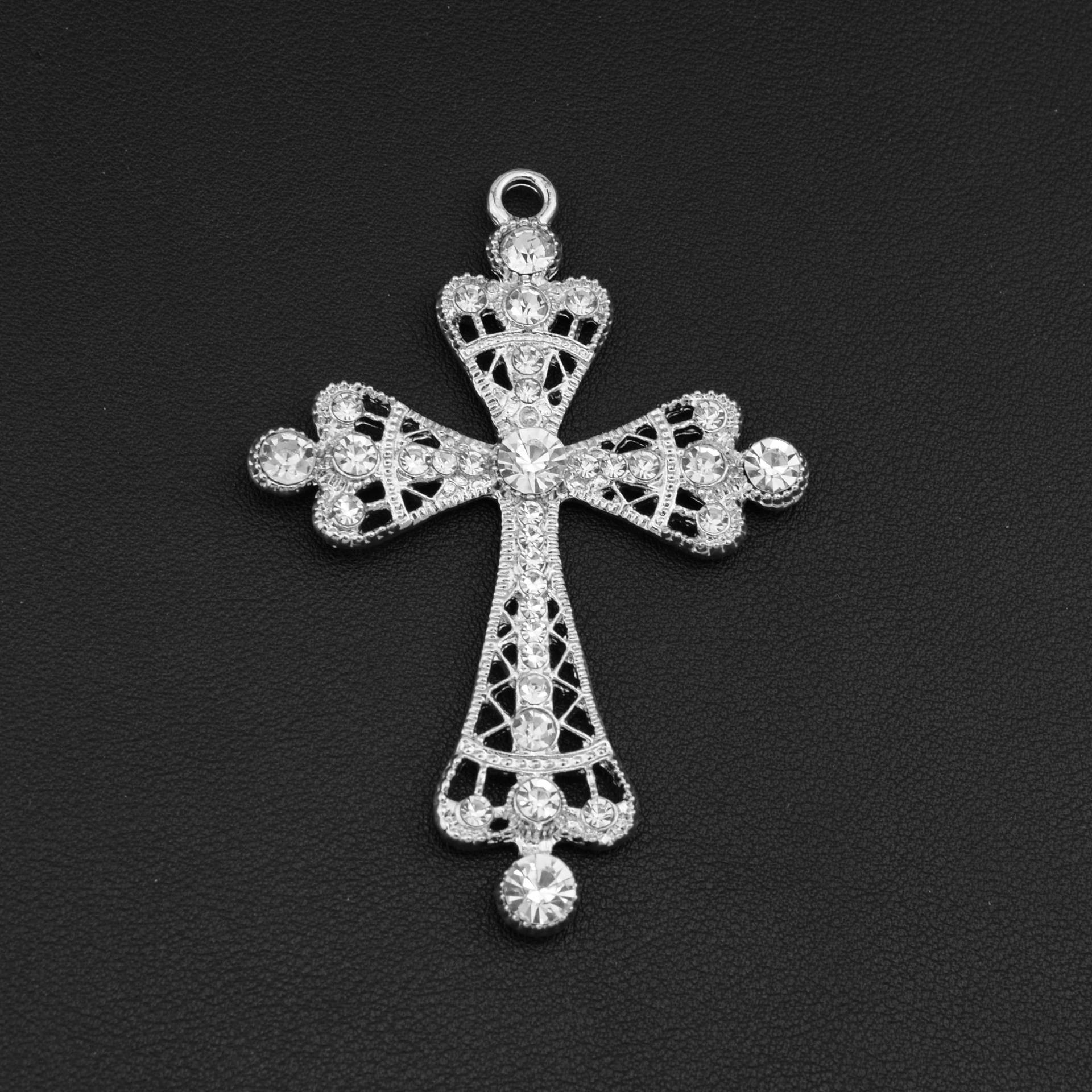 Pendentifs croix en alliage de zinc , Placage de couleur argentée, DIY & avec strass, argent, Vendu par PC