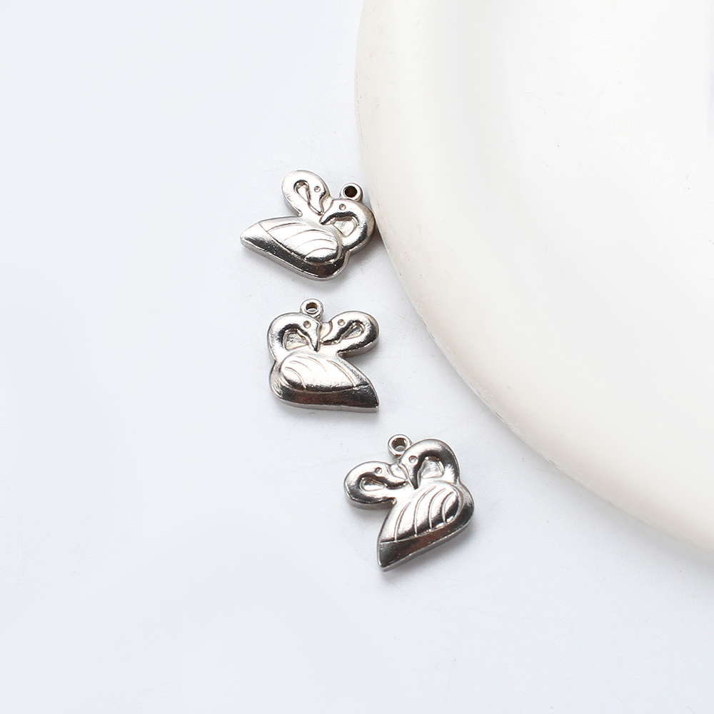 Pendentifs d'animaux en acier inoxydable , Acier inoxydable 304, cygne, Placage de couleur argentée, DIY, argent, 15.03x4.11x15.51mm, Vendu par PC