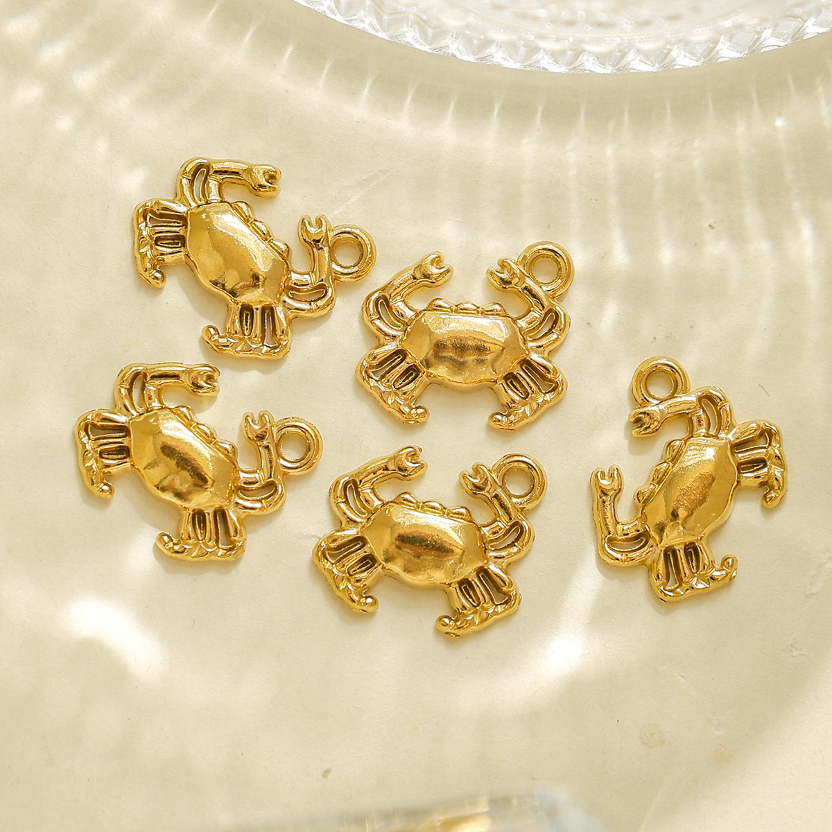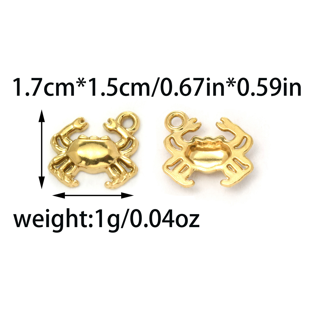 Pendentifs d'animaux en acier inoxydable , Acier inoxydable 304, crabe, Placage de couleur d'or, DIY, doré, 10PC/sac, Vendu par sac