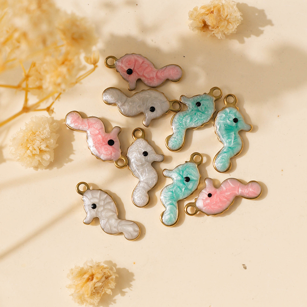 Pendentifs d'animaux en acier inoxydable , Acier inoxydable 304, hippocampe, Placage, DIY & émail, plus de couleurs à choisir, 10PC/sac, Vendu par sac