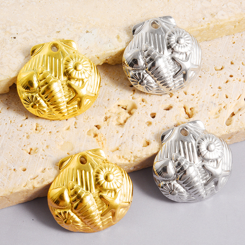 Pendentifs d'animaux en acier inoxydable , Acier inoxydable 304, coquille, Placage, DIY, plus de couleurs à choisir, 10PC/sac, Vendu par sac