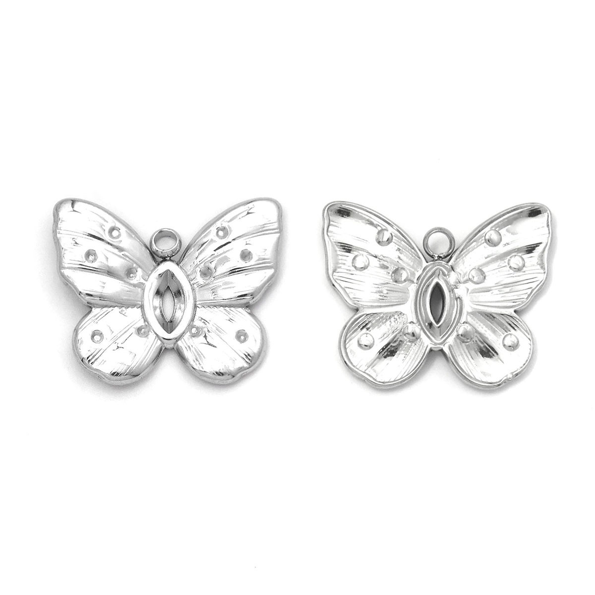 Pendentifs d'animaux en acier inoxydable , Acier inoxydable 304, papillon, Placage, DIY, plus de couleurs à choisir, 10PC/sac, Vendu par sac