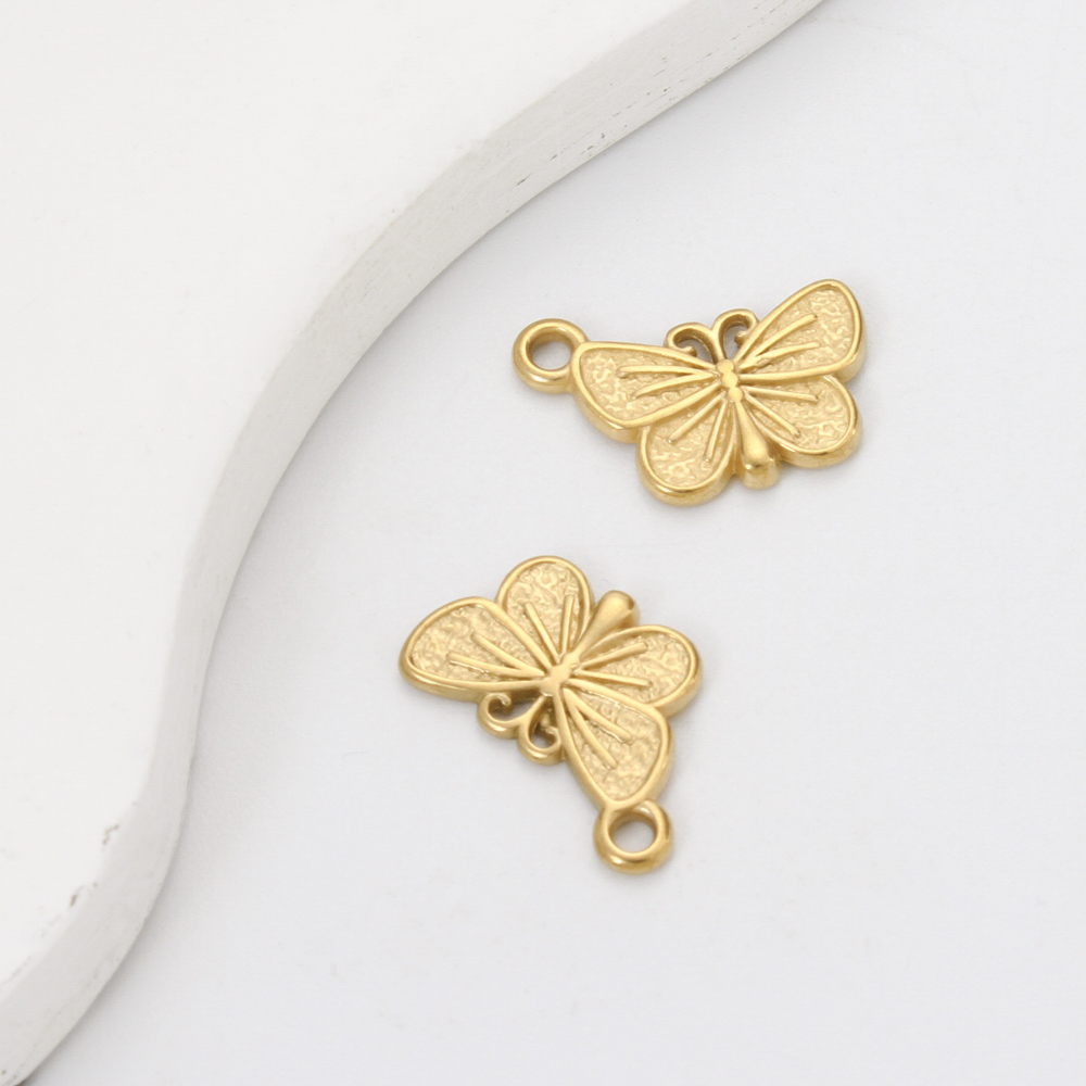 Pendentifs d'animaux en acier inoxydable , Acier inoxydable 304, papillon, Placage de couleur d'or, DIY, doré, 12x16x2.3mm, Vendu par PC