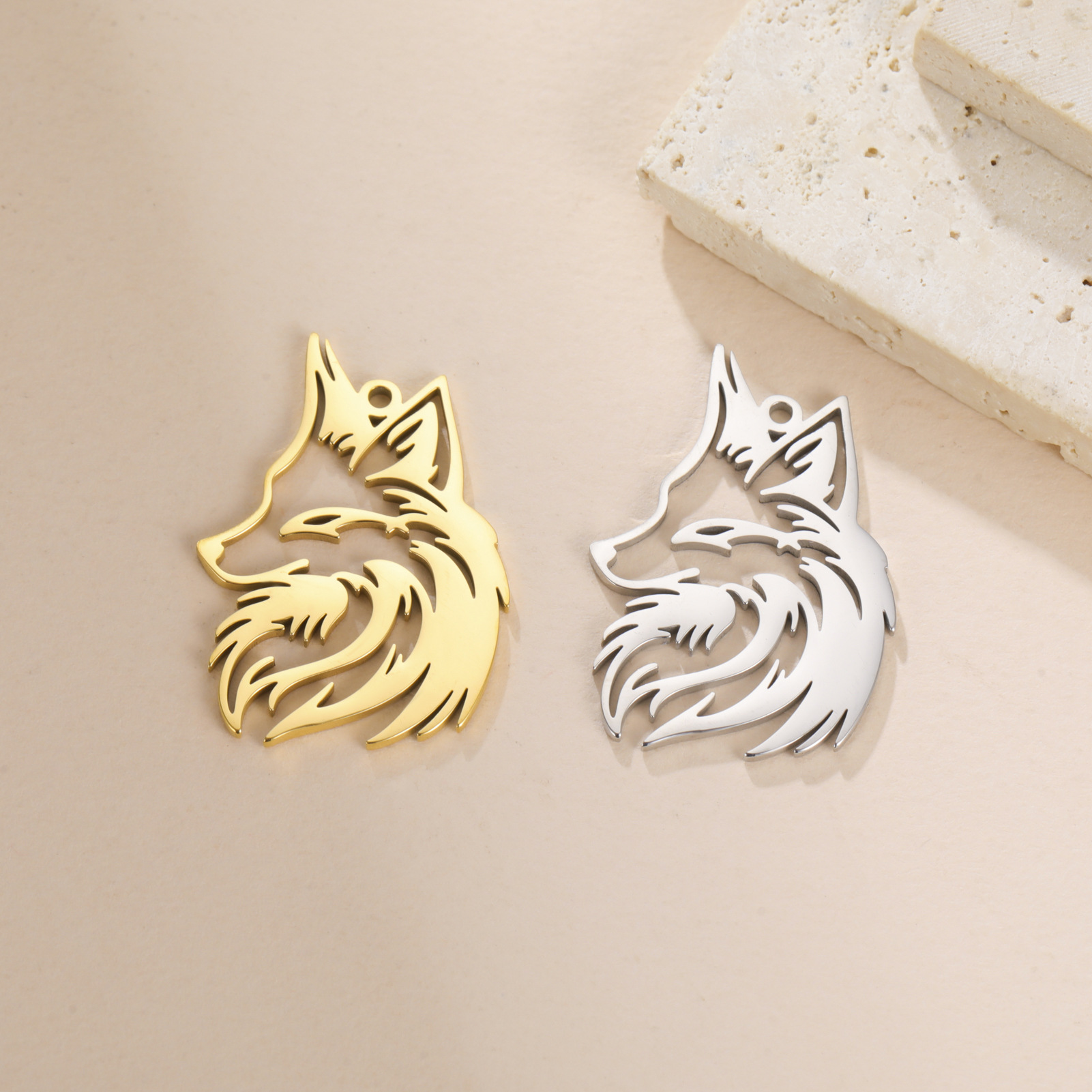 Pendentifs d'animaux en acier inoxydable , acier inoxydable 316L, loup, noircir Environ Vendu par PC