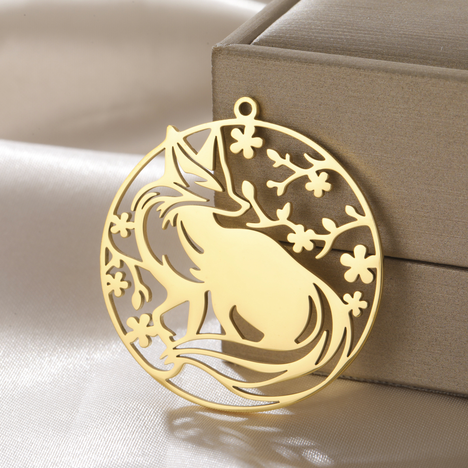Pendentifs d'animaux en acier inoxydable , Acier inoxydable 304, renard, Placage, DIY & creux, plus de couleurs à choisir, 35x37.6mm, 10PC/sac, Vendu par sac