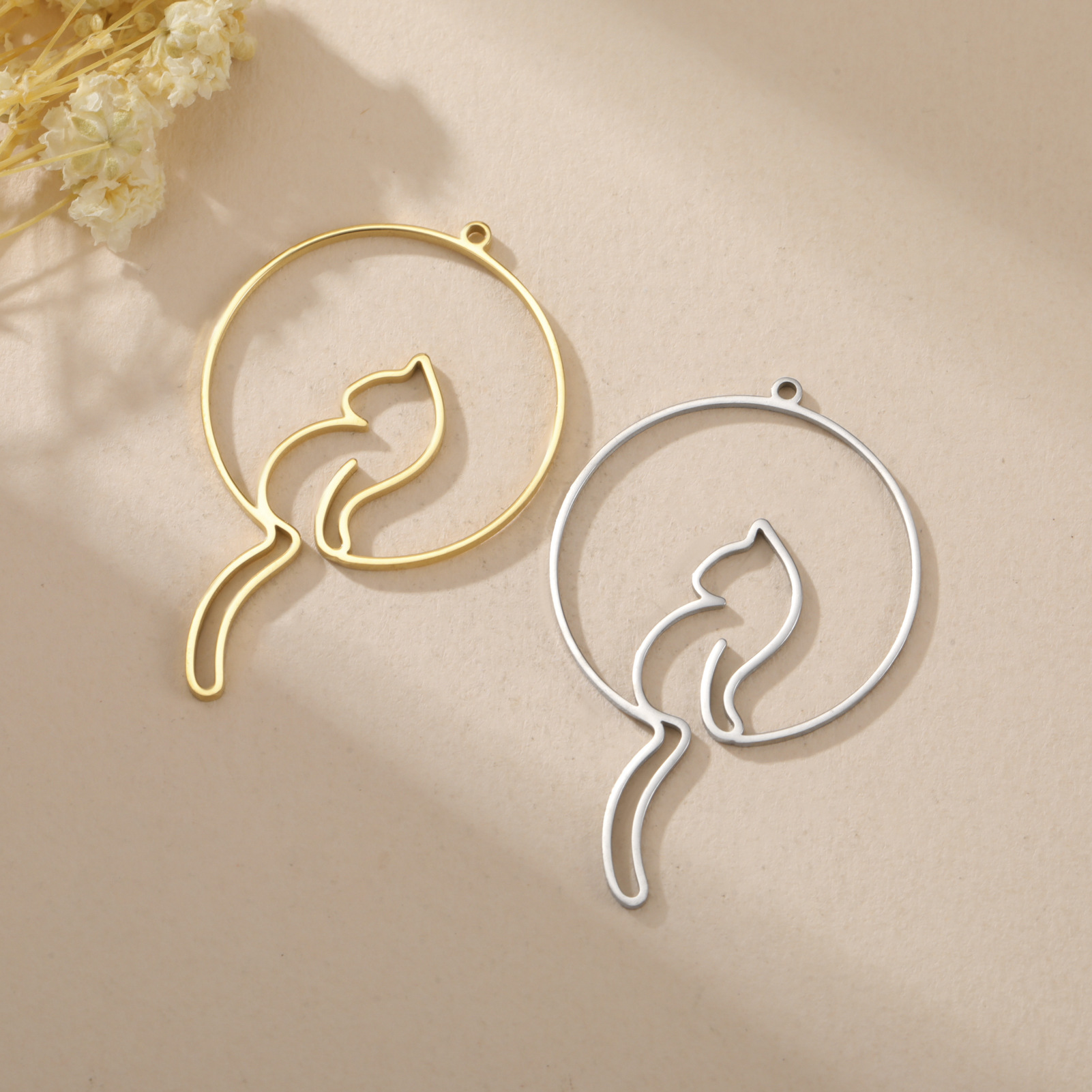 Pendentifs d'animaux en acier inoxydable , Acier inoxydable 304, chat, Placage, DIY & creux, plus de couleurs à choisir, 40x26mm, 10PC/sac, Vendu par sac
