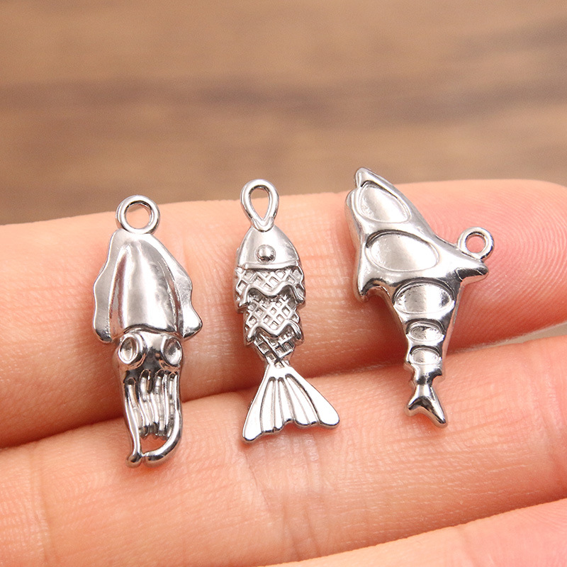Pendentifs d'animaux en acier inoxydable , Acier inoxydable 304, poisson, Placage, DIY, plus de couleurs à choisir, 10PC/sac, Vendu par sac