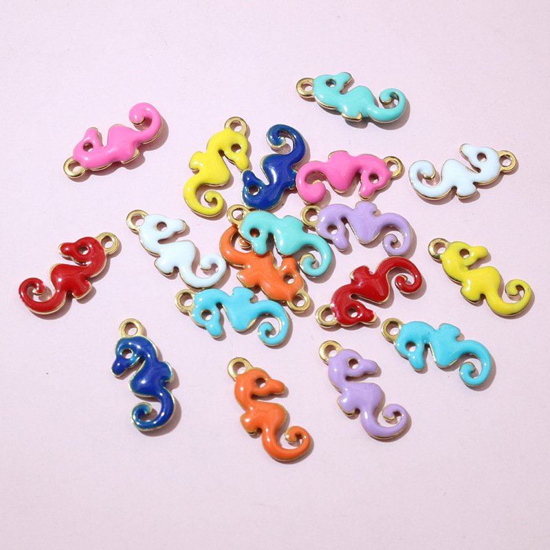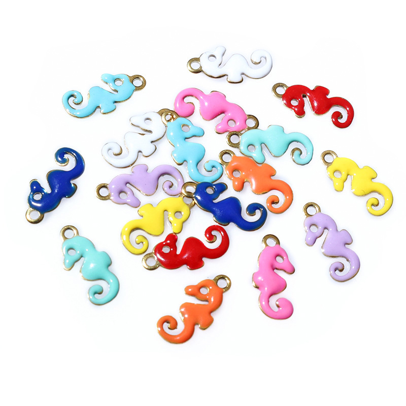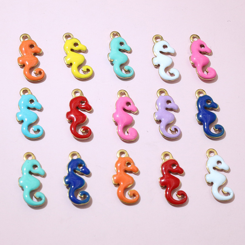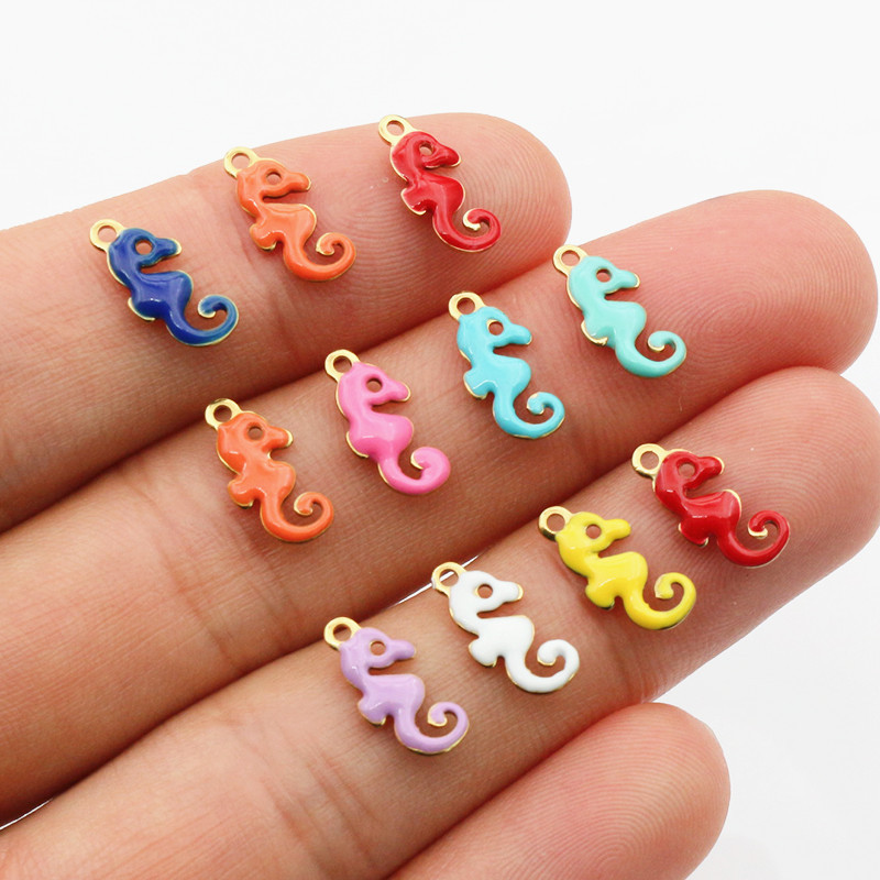 Pendentifs d'animaux en acier inoxydable , Acier inoxydable 304, hippocampe, Placage de couleur d'or, DIY & émail, plus de couleurs à choisir, 12x6mm, Vendu par PC