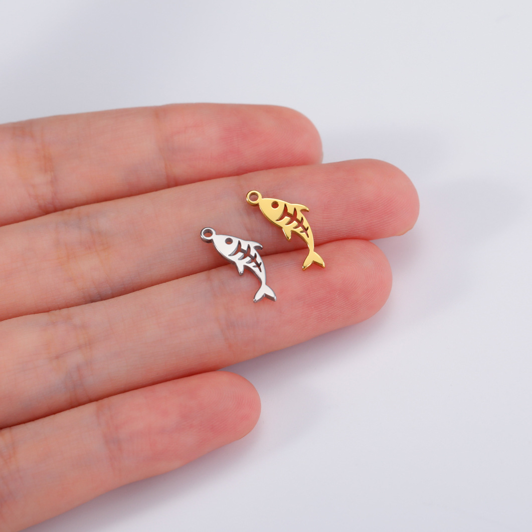 Pendentifs d'animaux en acier inoxydable , Acier inoxydable 304, poisson, DIY, plus de couleurs à choisir, 7.5x15.2mm, Vendu par PC