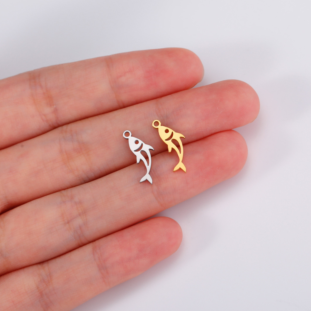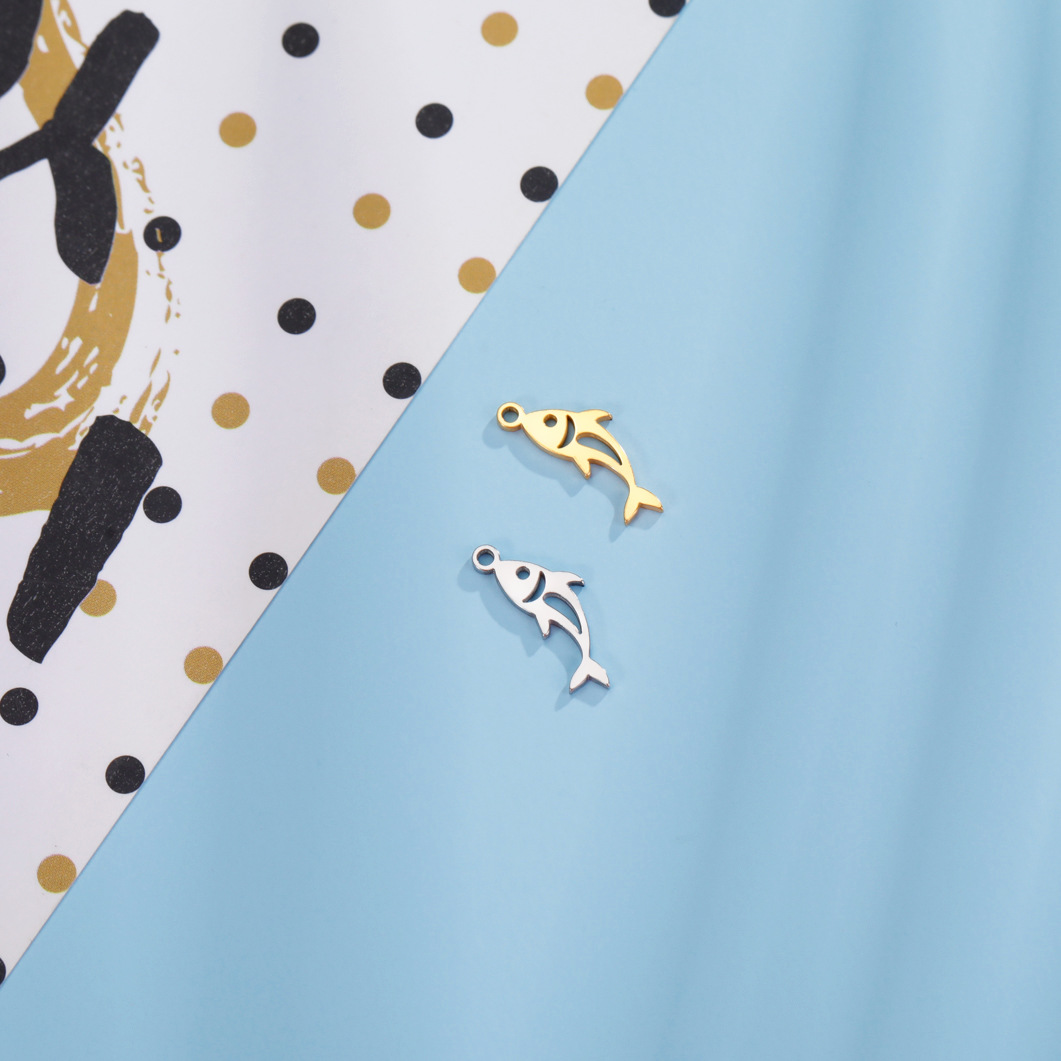 Pendentifs d'animaux en acier inoxydable , Acier inoxydable 304, poisson, DIY, plus de couleurs à choisir, 7.5x15.2mm, Vendu par PC